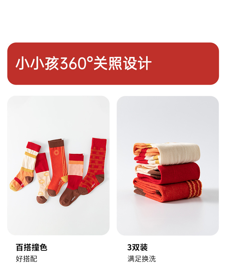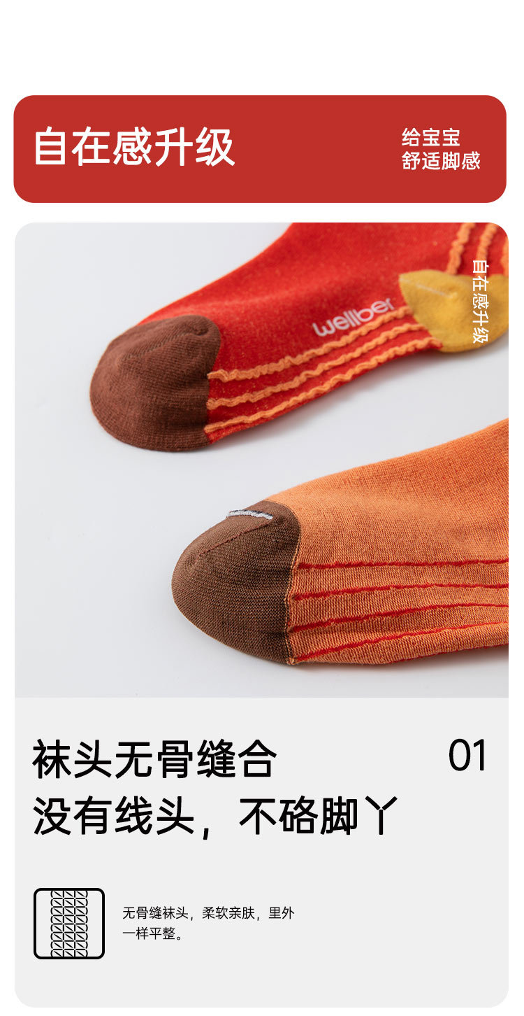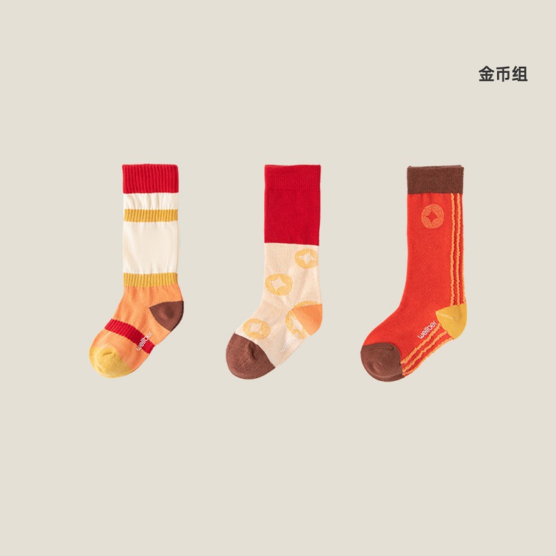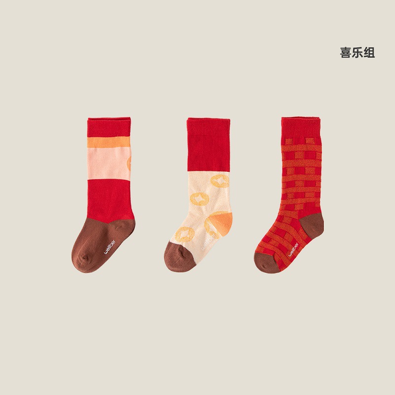 윌베루 아동용 양말 가을 겨울 아기용 빨간색 중간 길이 양말 따뜻하고 두꺼운 아기용 면 양말 귀엽고 두꺼운스토어 가기
