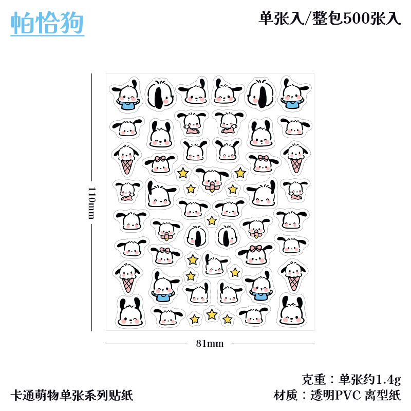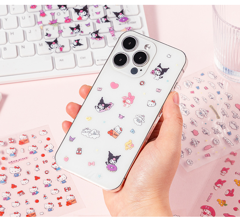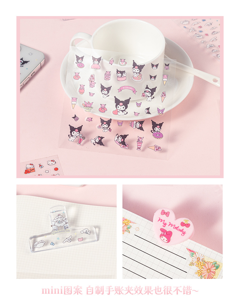 SL-17 산리오 미니 만화 방수 투명 Pvc 스티커 손 계정 일기 장식 재료 동물 쿨 루미