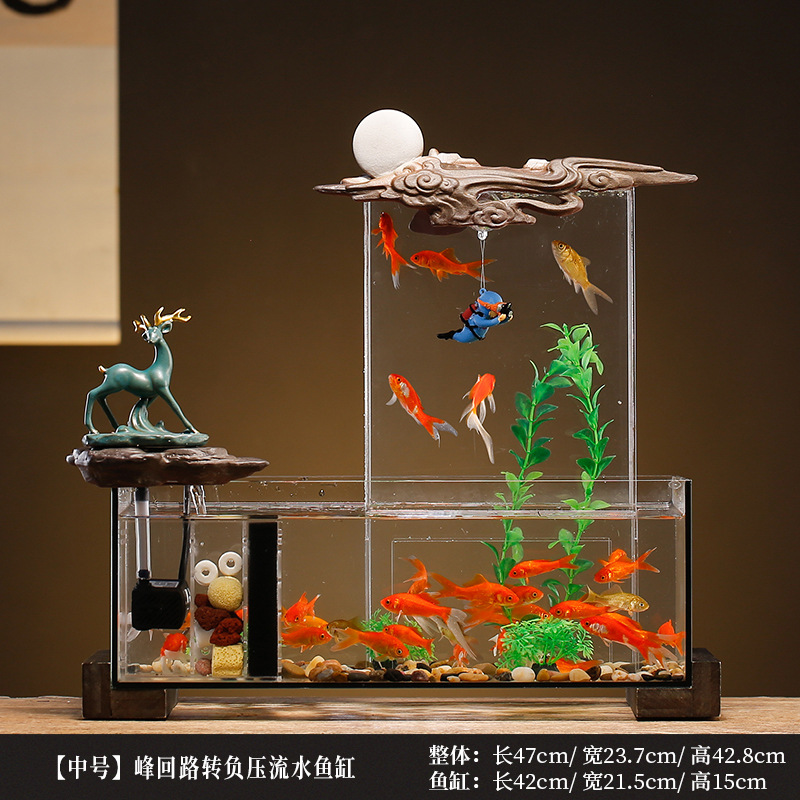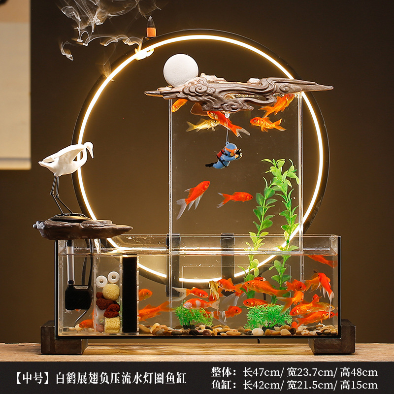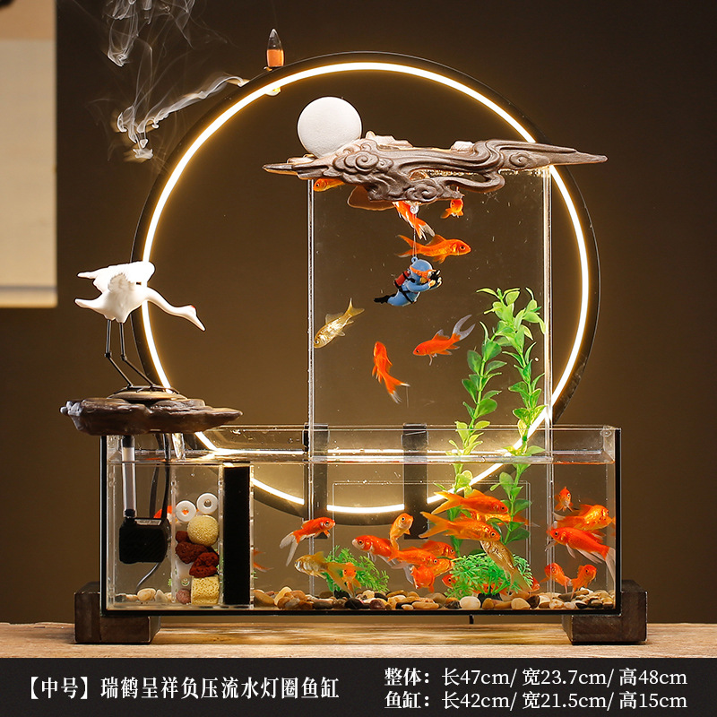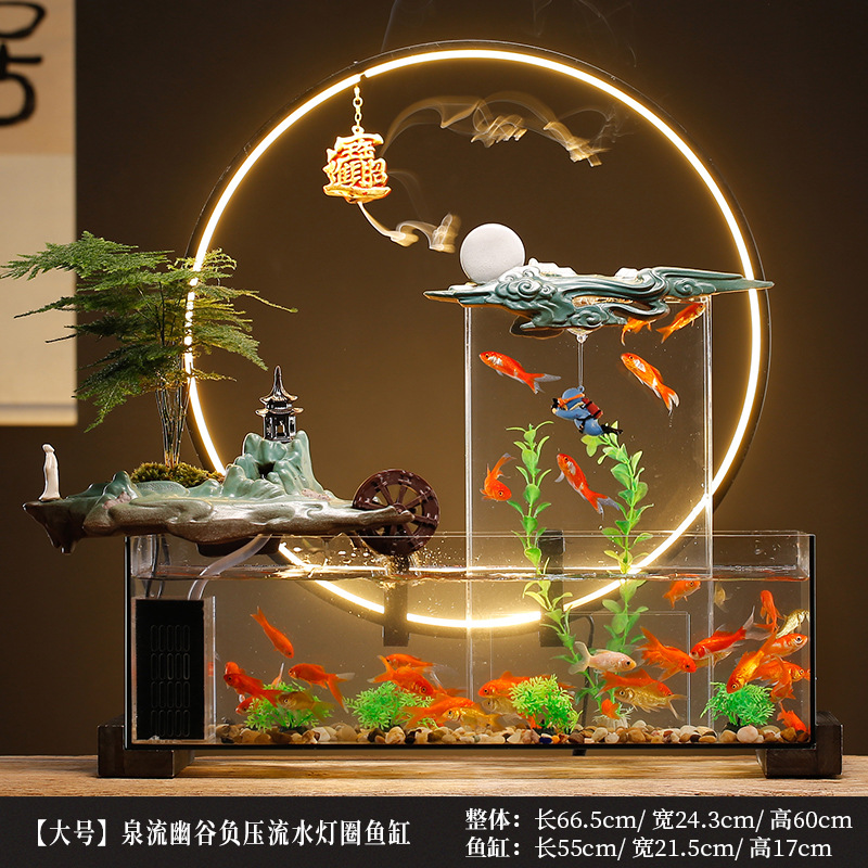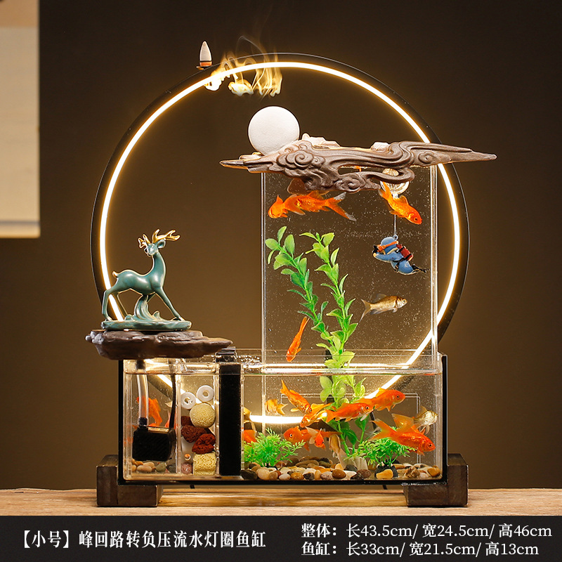 가정용 거실 순환 물 어항 장식 창조적 인 TV 캐비닛 사무실 데스크탑 유리 풍경 생태 수족관