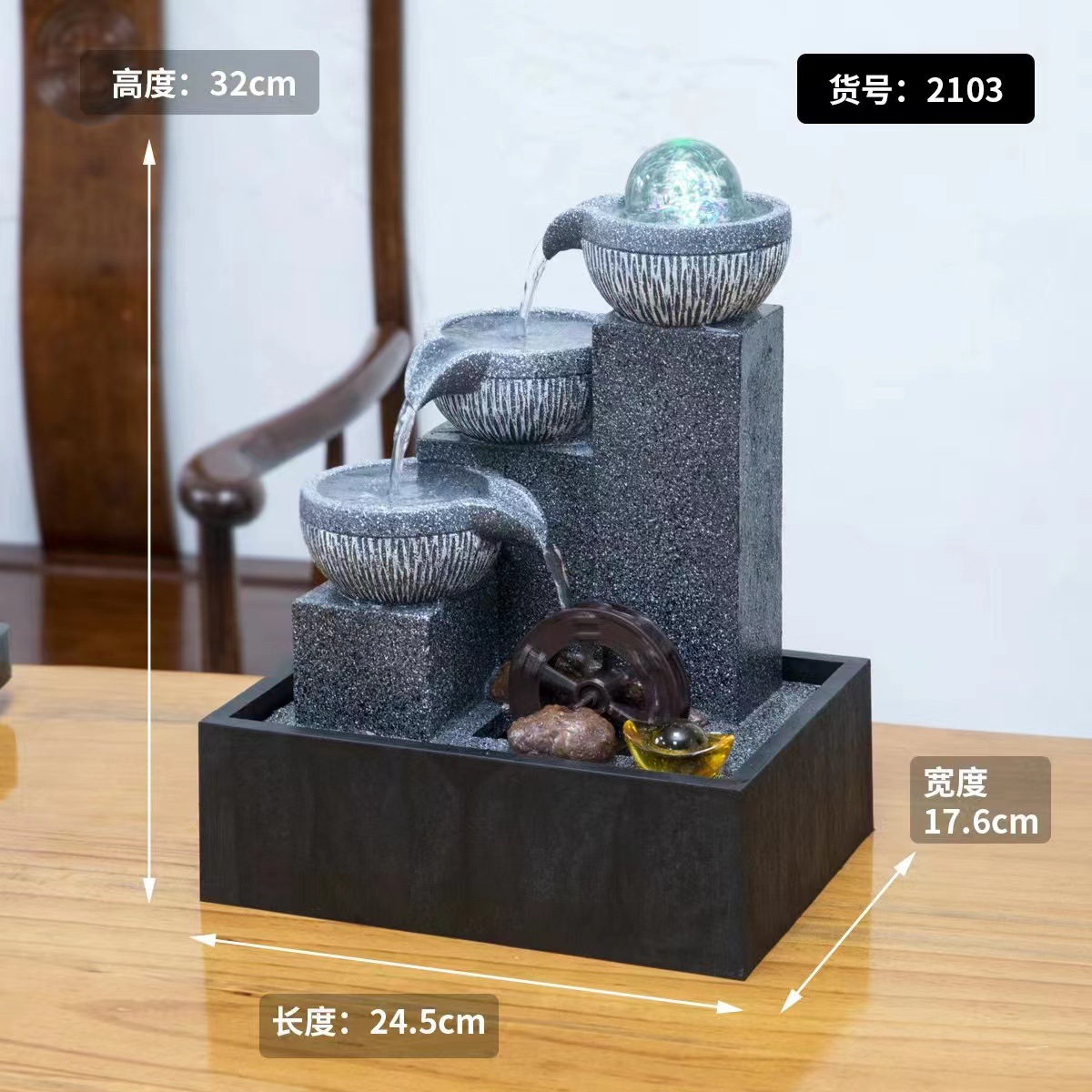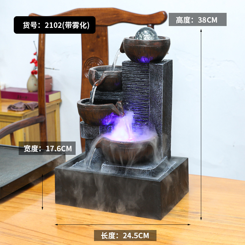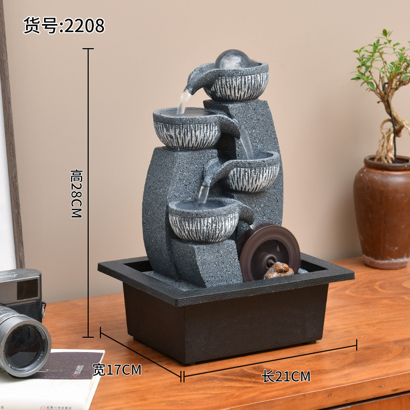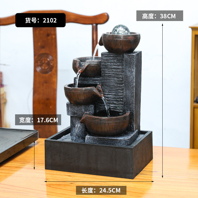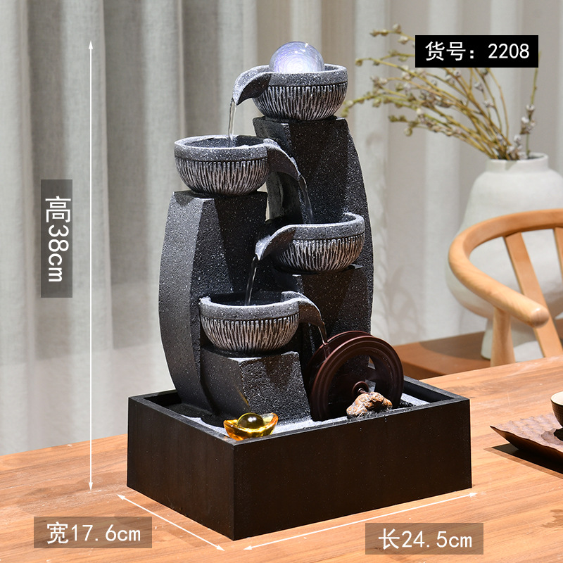 국경 데스크탑 작은 흐르는 물 장식품 순환 물 트럭 분수 사무실 찻집 상점 풍수 바퀴 집들이 오프닝 장식