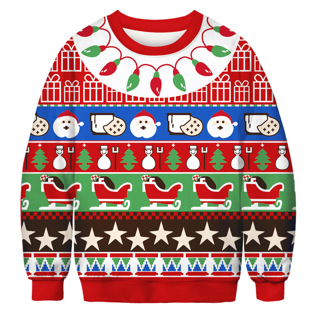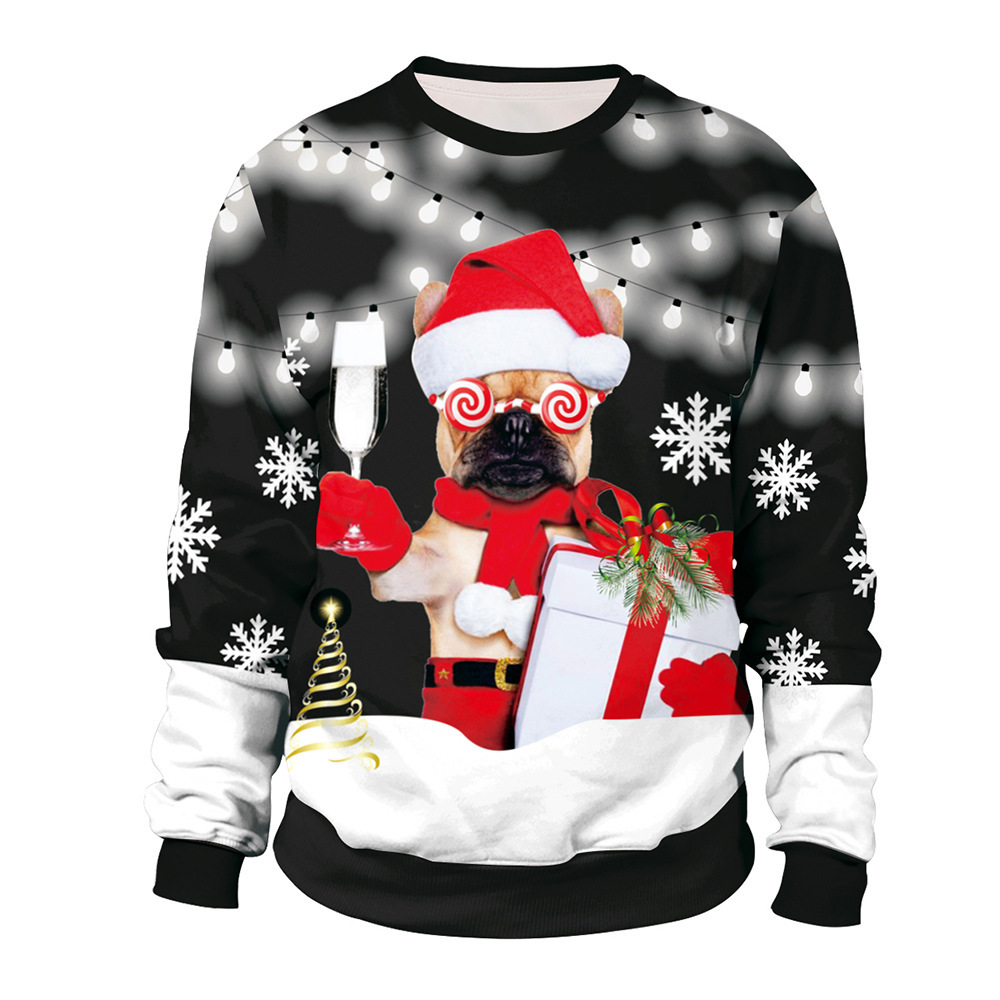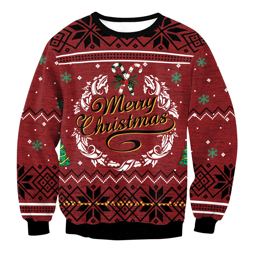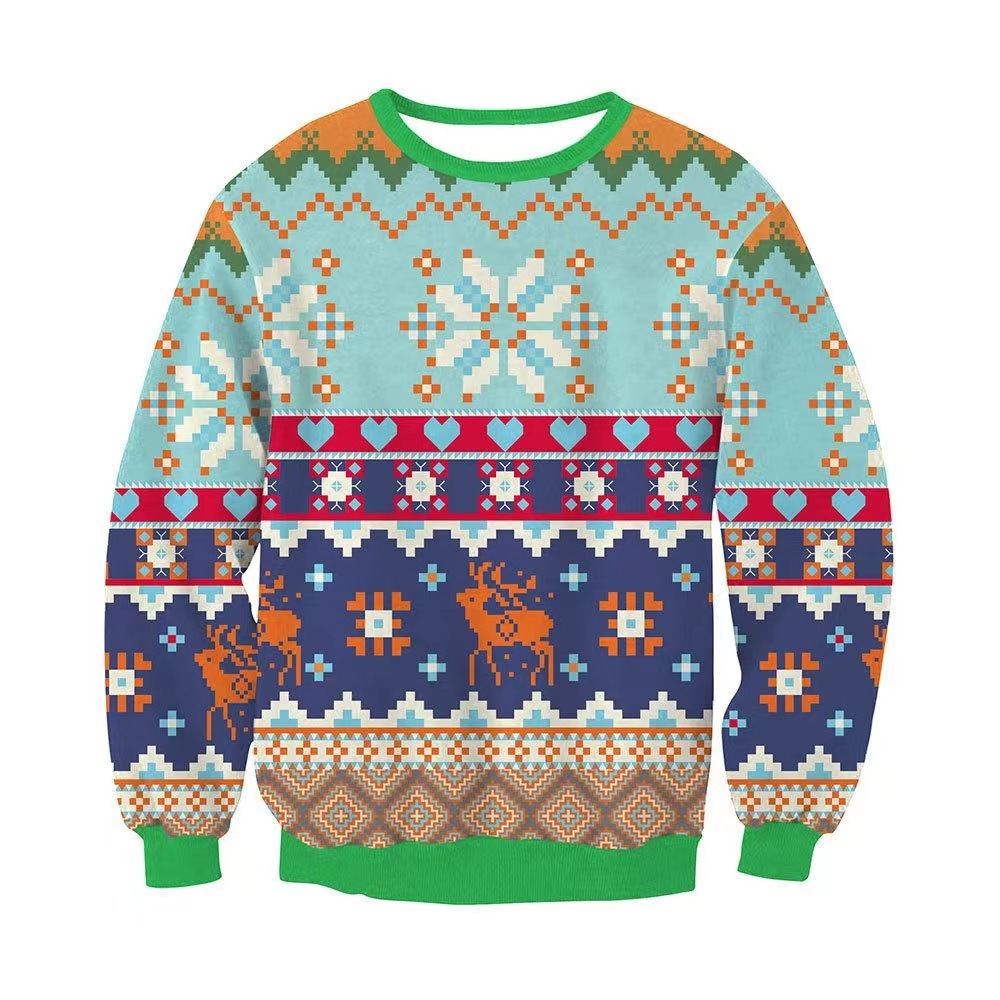 2023 가을 핫 뉴 디지털 프린팅 크리스마스 남성용 여성용 스웨터 크루 넥 풀오버 스웨트 셔츠 도매