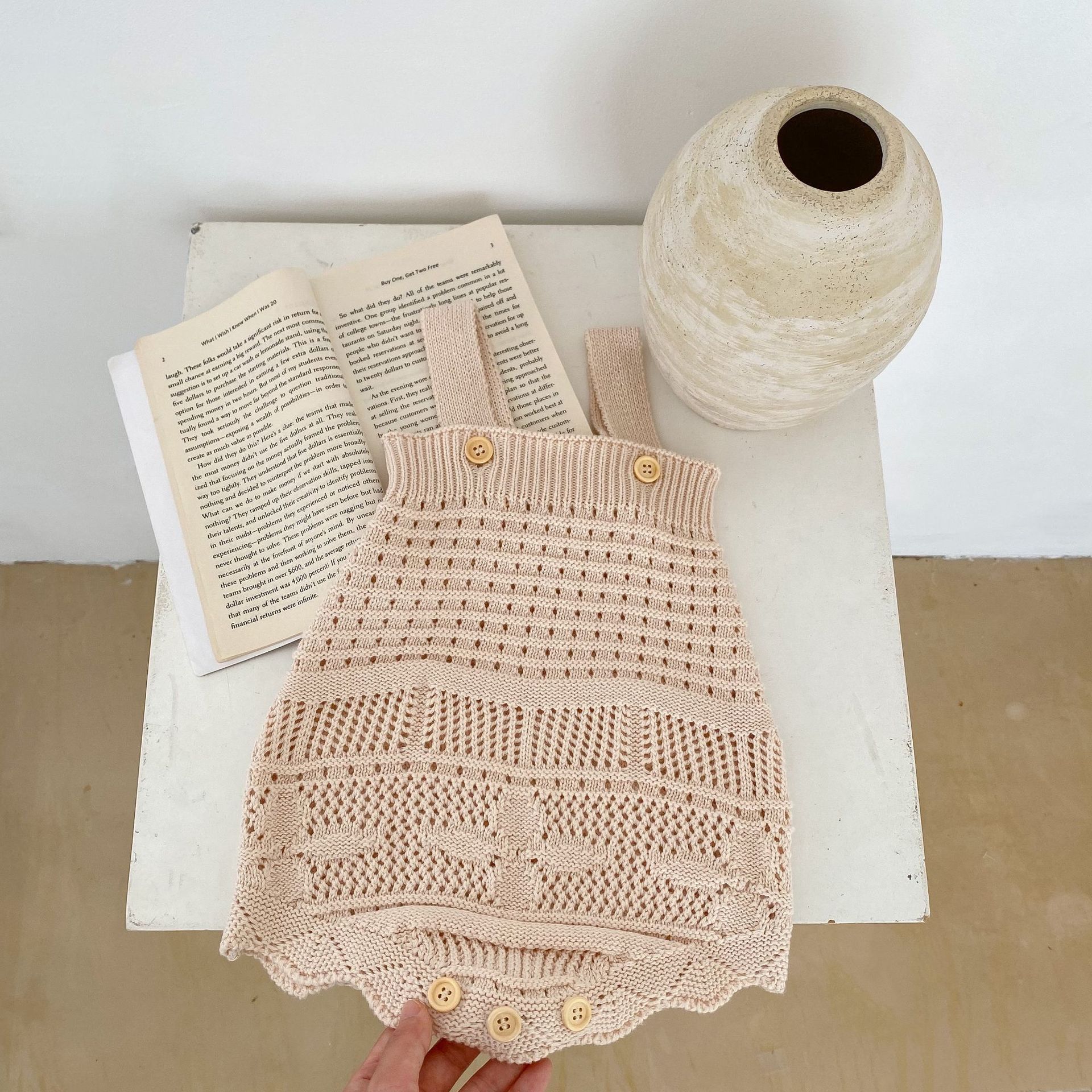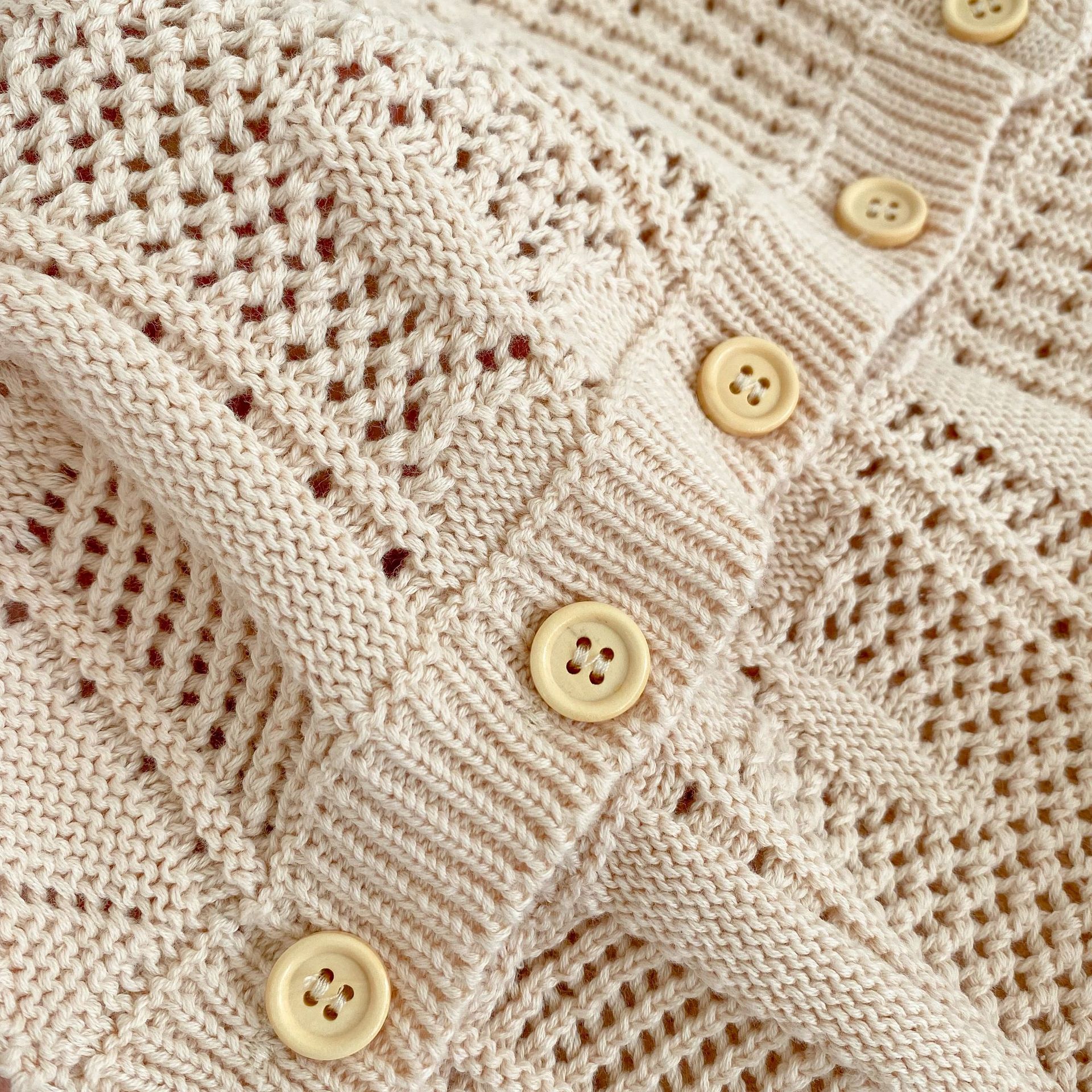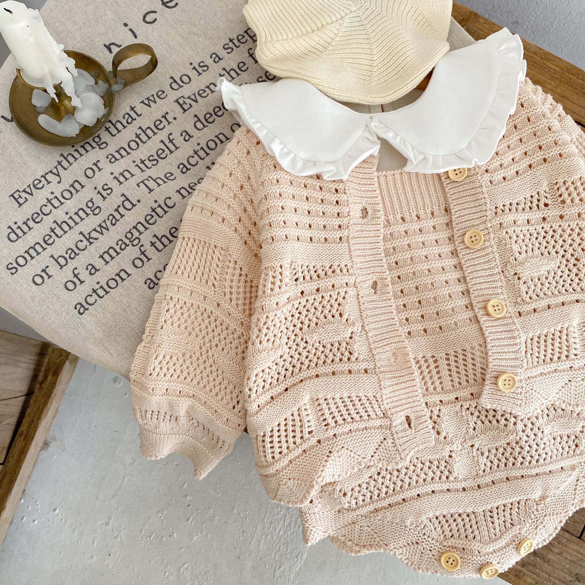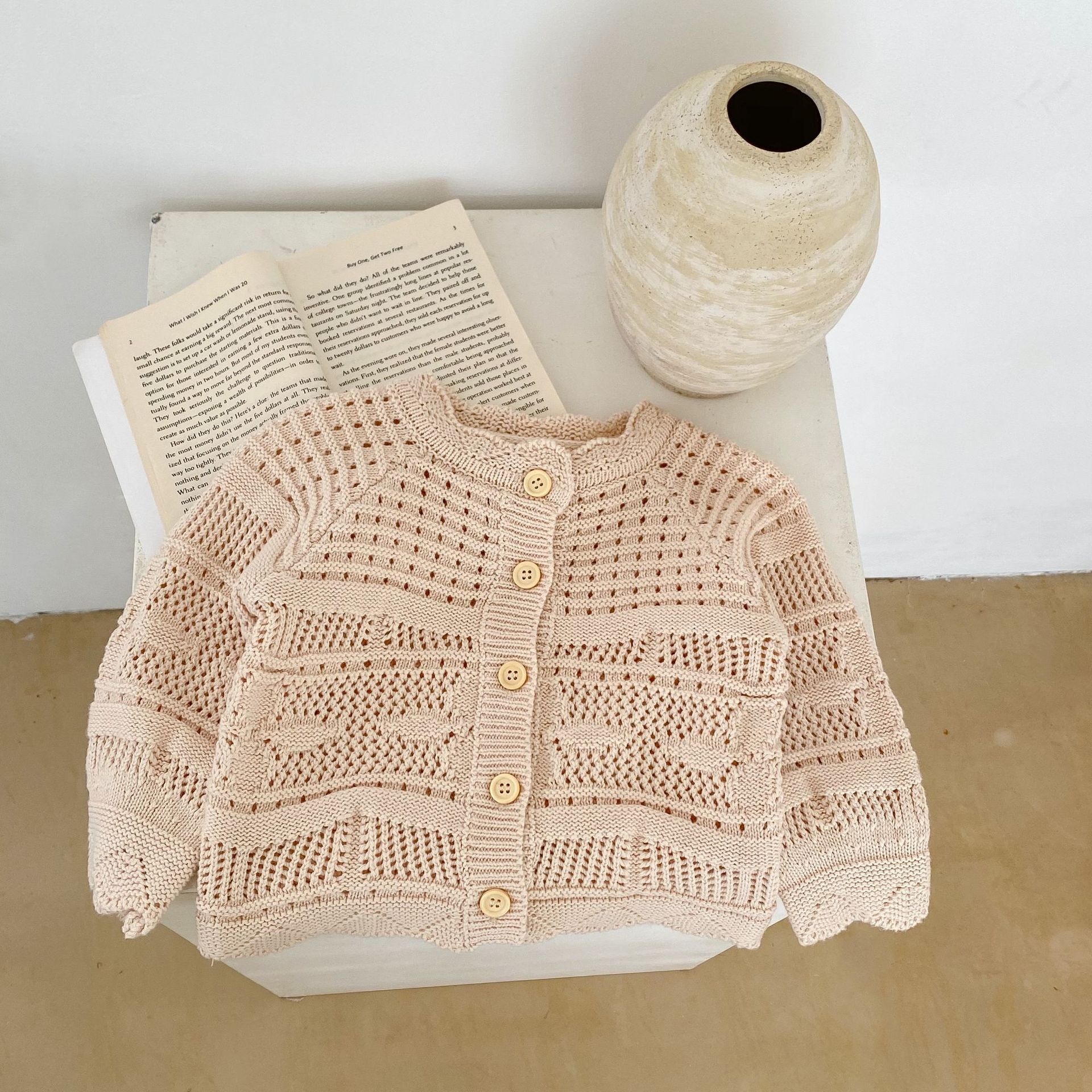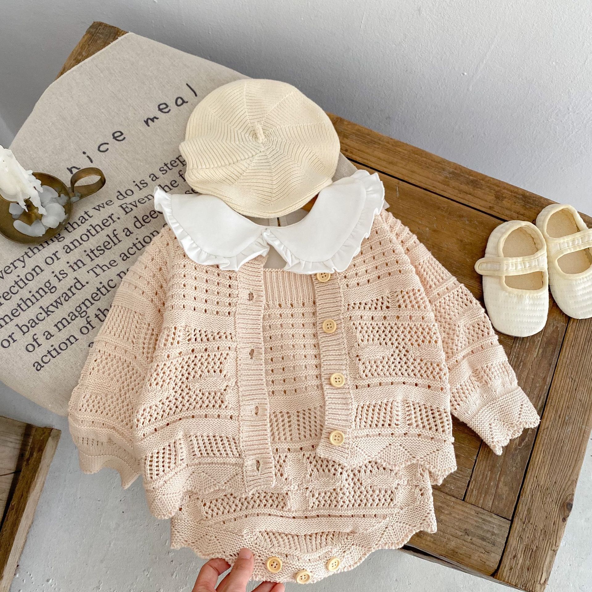 2023 봄 착용 아기 소녀 아기 니트 중공 패턴 스웨터 재킷 + 스트랩 하 이 2 조각 세트스토어 가기