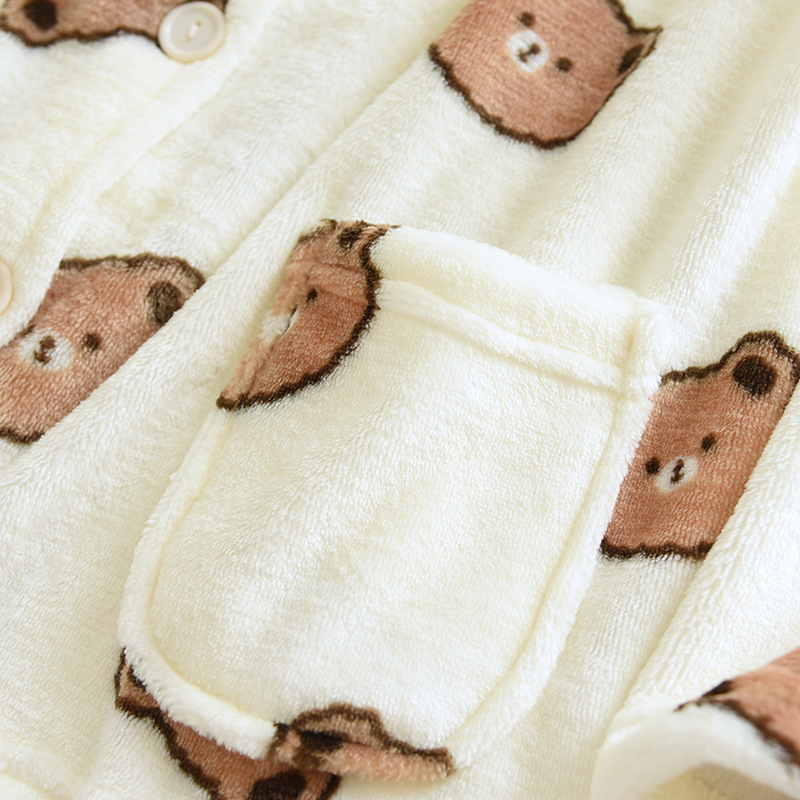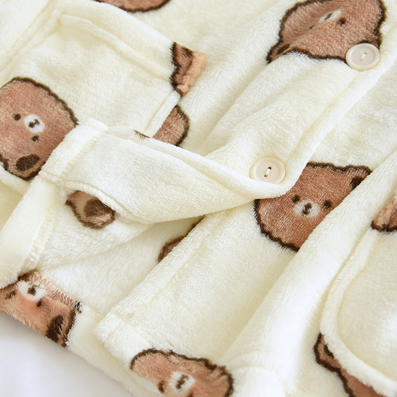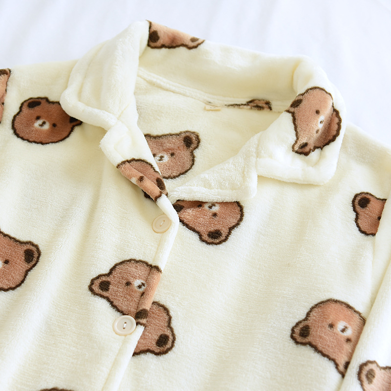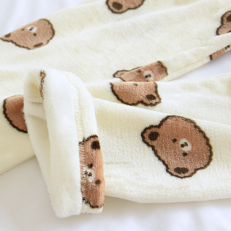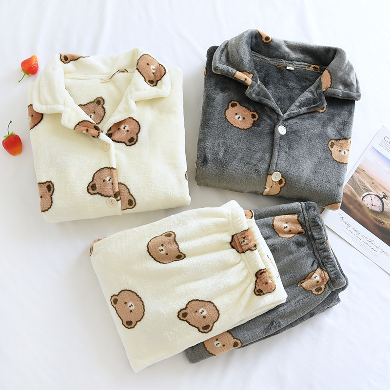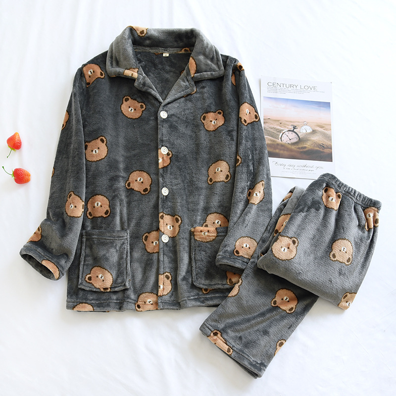 산호 벨벳 커플 잠옷 가을과 겨울 기모 두꺼운 플란넬 학생 남성과 여성을위한 따뜻한 단색 겨울 세트스토어 가기