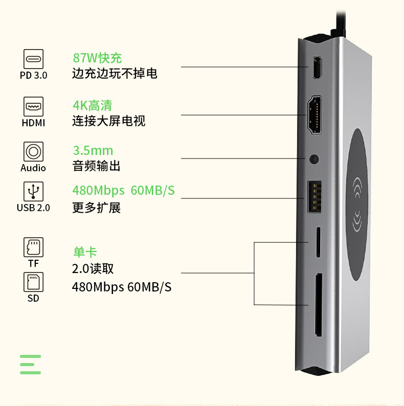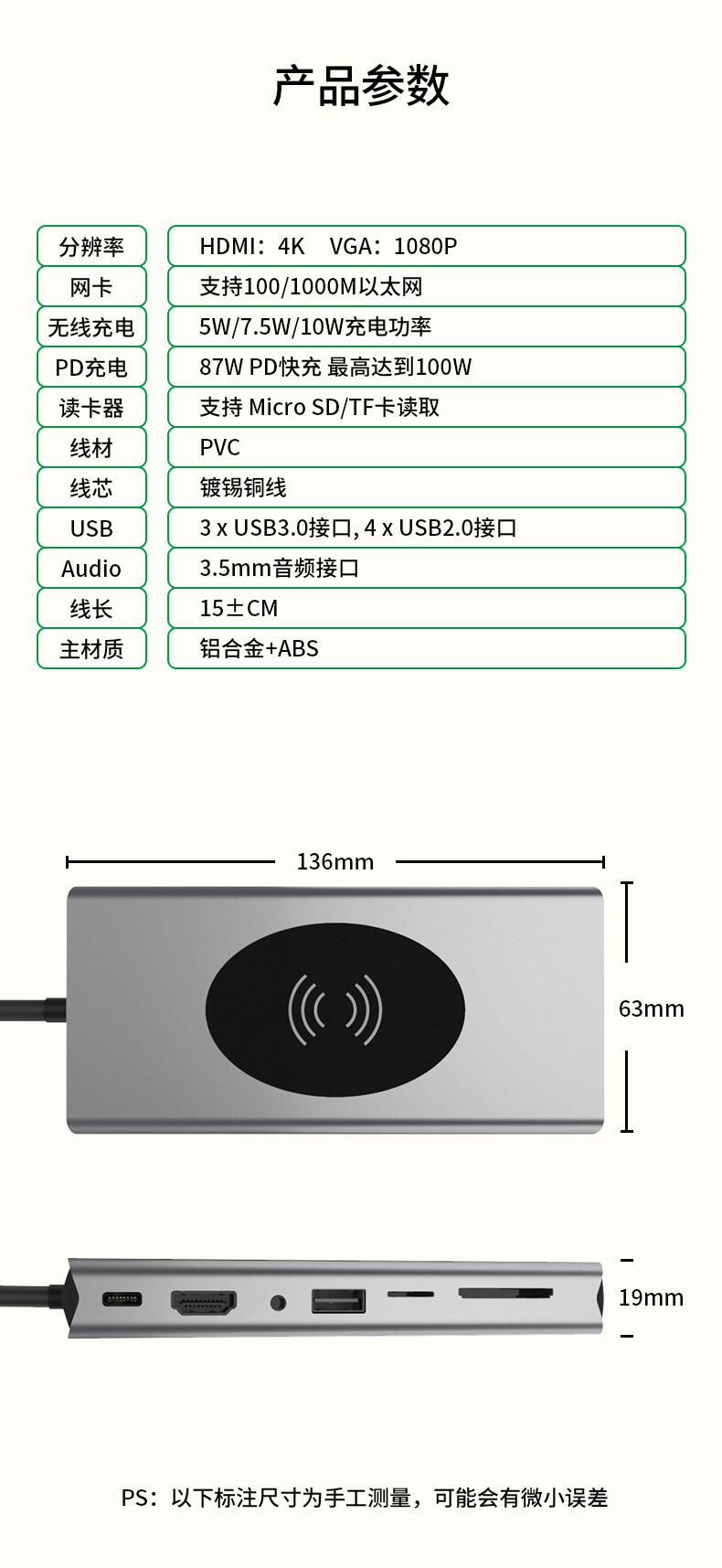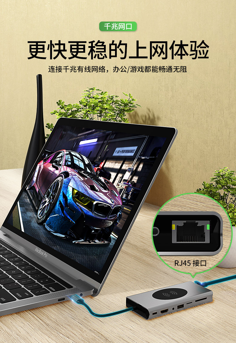 • 13 in1 [무선 충전 15W 100 M 네트워크 포트]]
