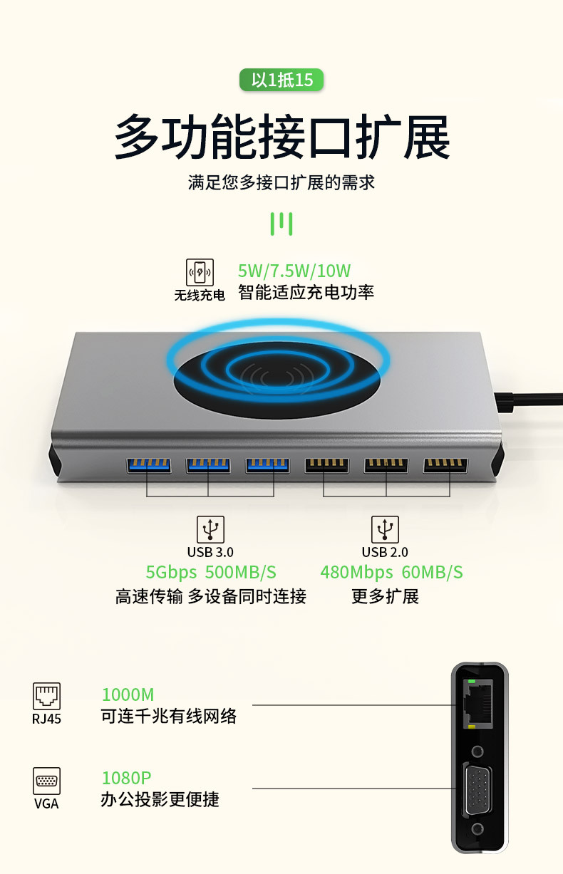• 15 in1 [무선 충전 15W 기가비트 포트]]