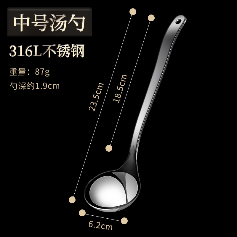 316L 스테인레스 스틸 냄비 숟가락 긴 손잡이 두꺼운 대형 수프 스푼 소쿠리 스푼 가정용 수프 작은 수프 스푼 세트스토어 가기