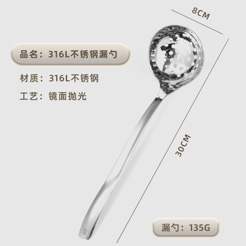316L 스테인레스 스틸 냄비 숟가락 긴 손잡이 두꺼운 대형 수프 스푼 소쿠리 스푼 가정용 수프 작은 수프 스푼 세트