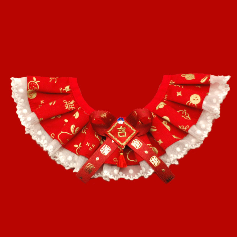 새해 목걸이 말의 해 패턴 고양이 강아지 레이스 침받이 타이디 가을 겨울 의상 용품 춘절 한정판
