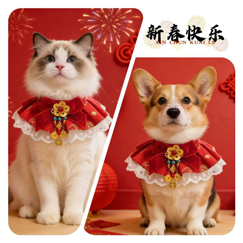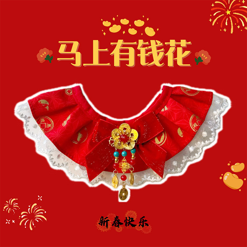 새해 목걸이 말의 해 패턴 고양이 강아지 레이스 침받이 타이디 가을 겨울 의상 용품 춘절 한정판스토어 가기