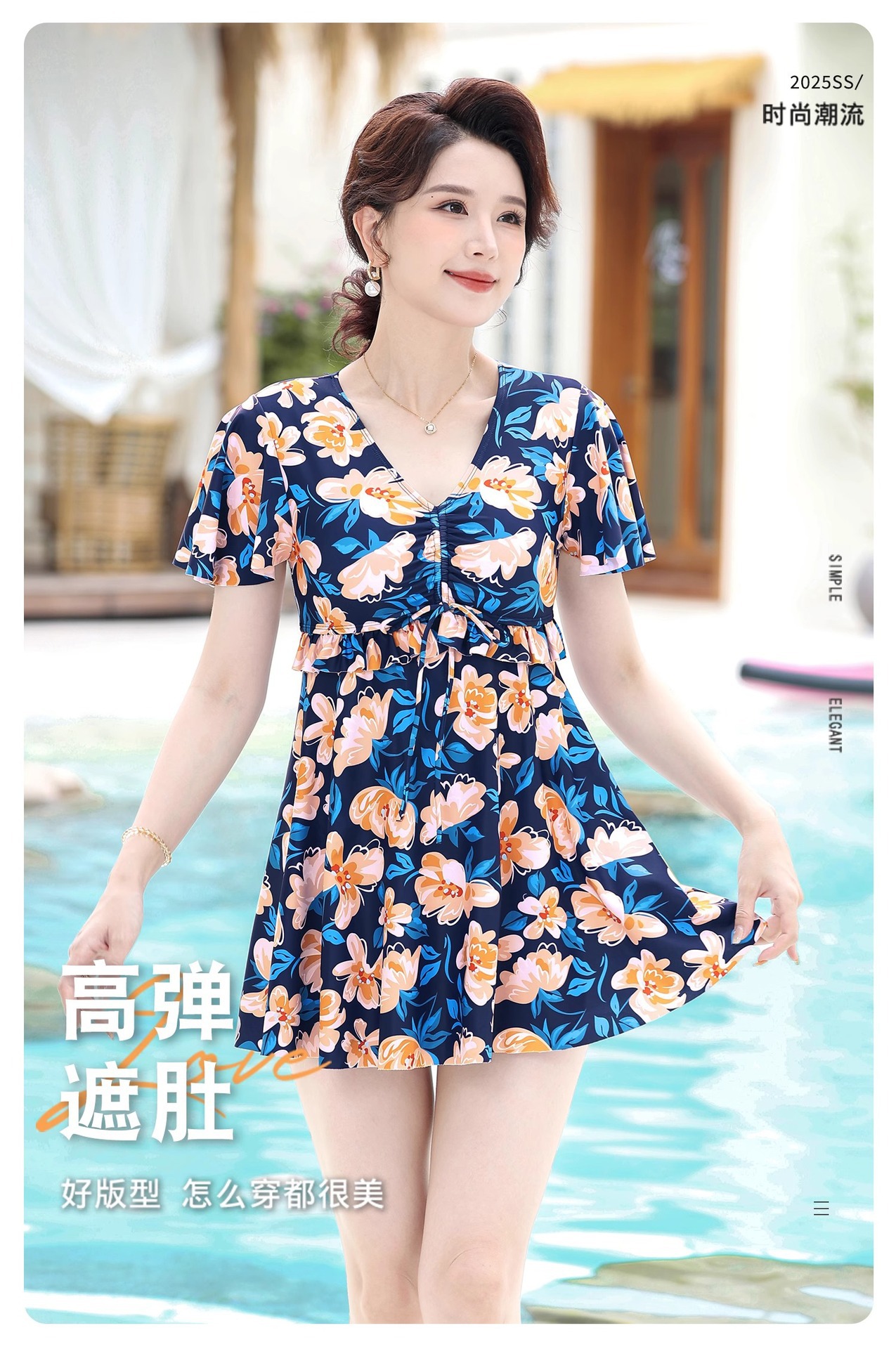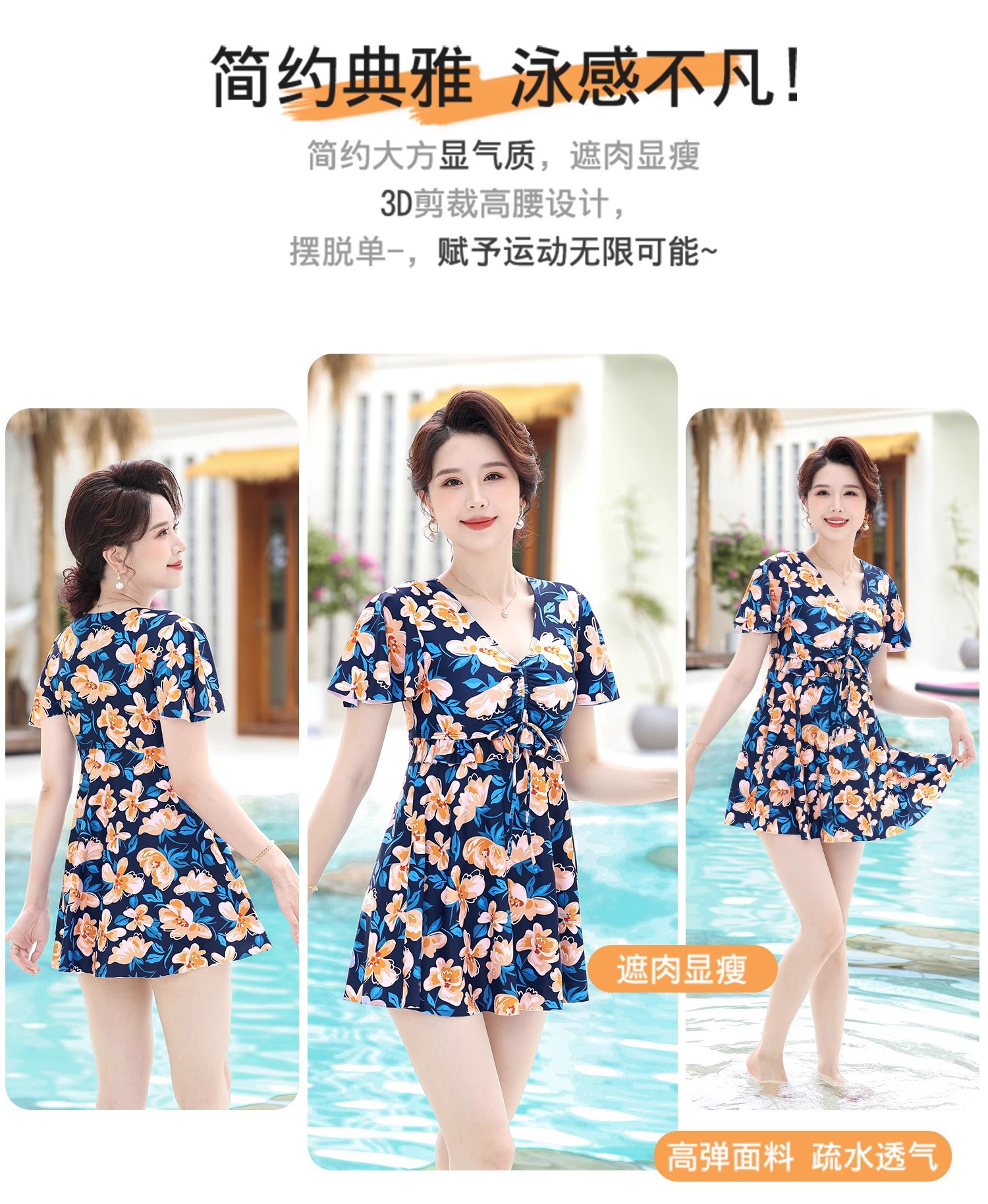 엄마 수영복 여성용 배 가리기 슬림 보정 보수적인 원피스 중년 노년 온천용 2025 신상품 대형 수영복 도매스토어 가기