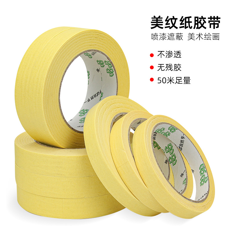 잔류 접착제가없는 고점도 마스킹 종이 테이프 노란색 마스킹 용지 스프레이 페인트 마스킹 장식 미용 재봉 종이 테이프 도매스토어 가기