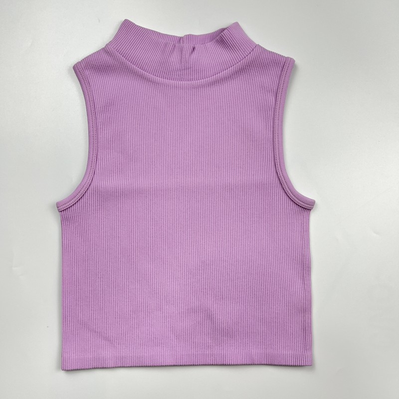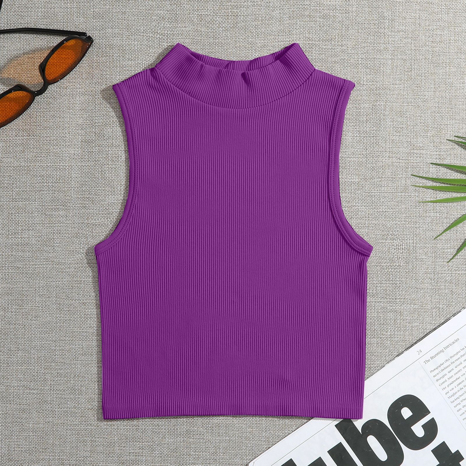 새로운 원활한 늑골 하이 넥 스포츠 조끼 전체 랩 세로 스트라이프 달리기 피트니스 요가 의류 빠른 건조 여성 탑