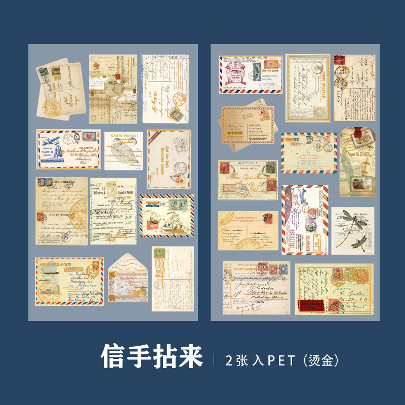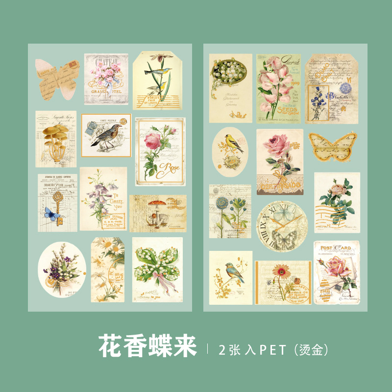 Yuezhen Jinse Nianhua 도금 손 계정 스티커 귀여운 2 조각 어린이 손 계정 스티커 복고풍 재료 도매스토어 가기
