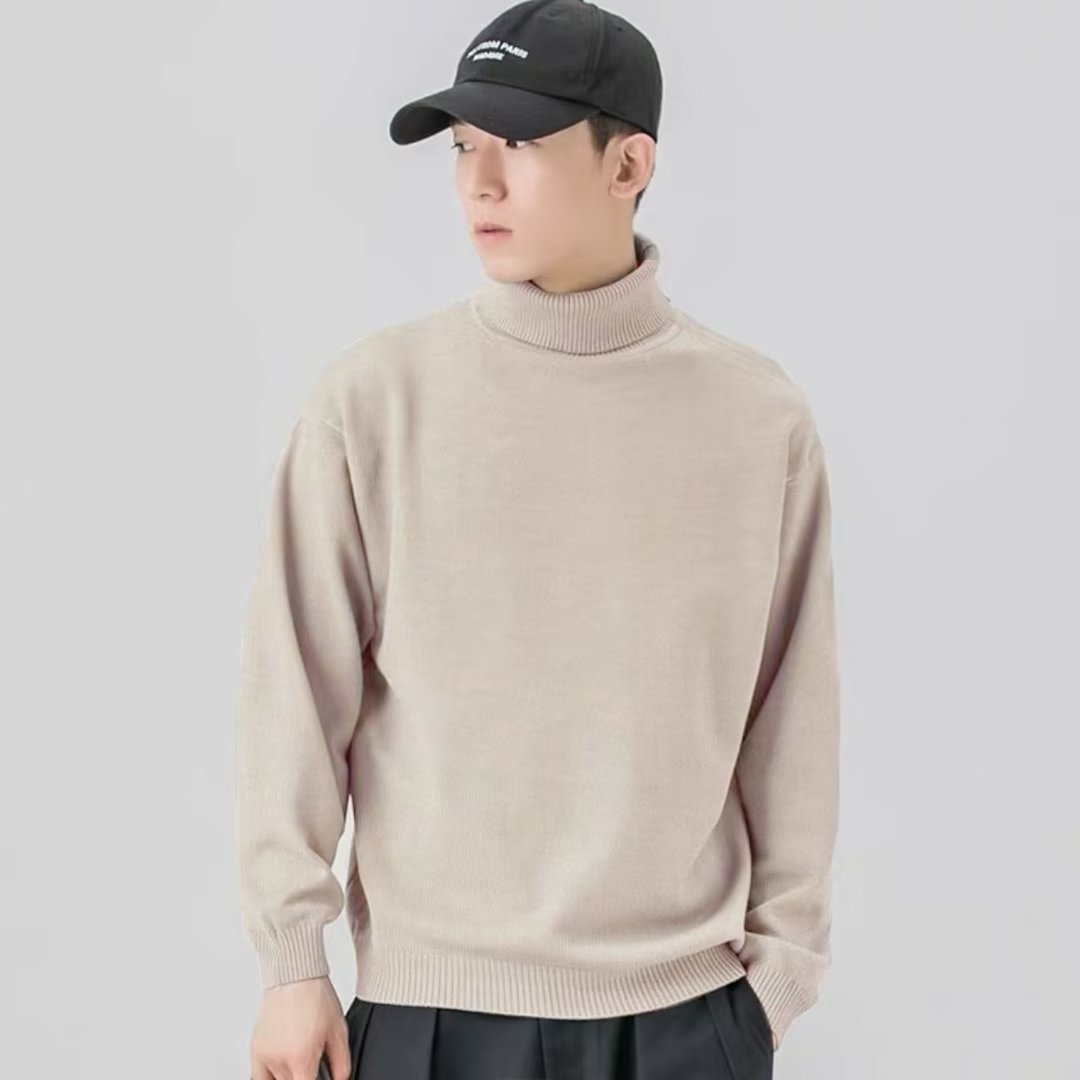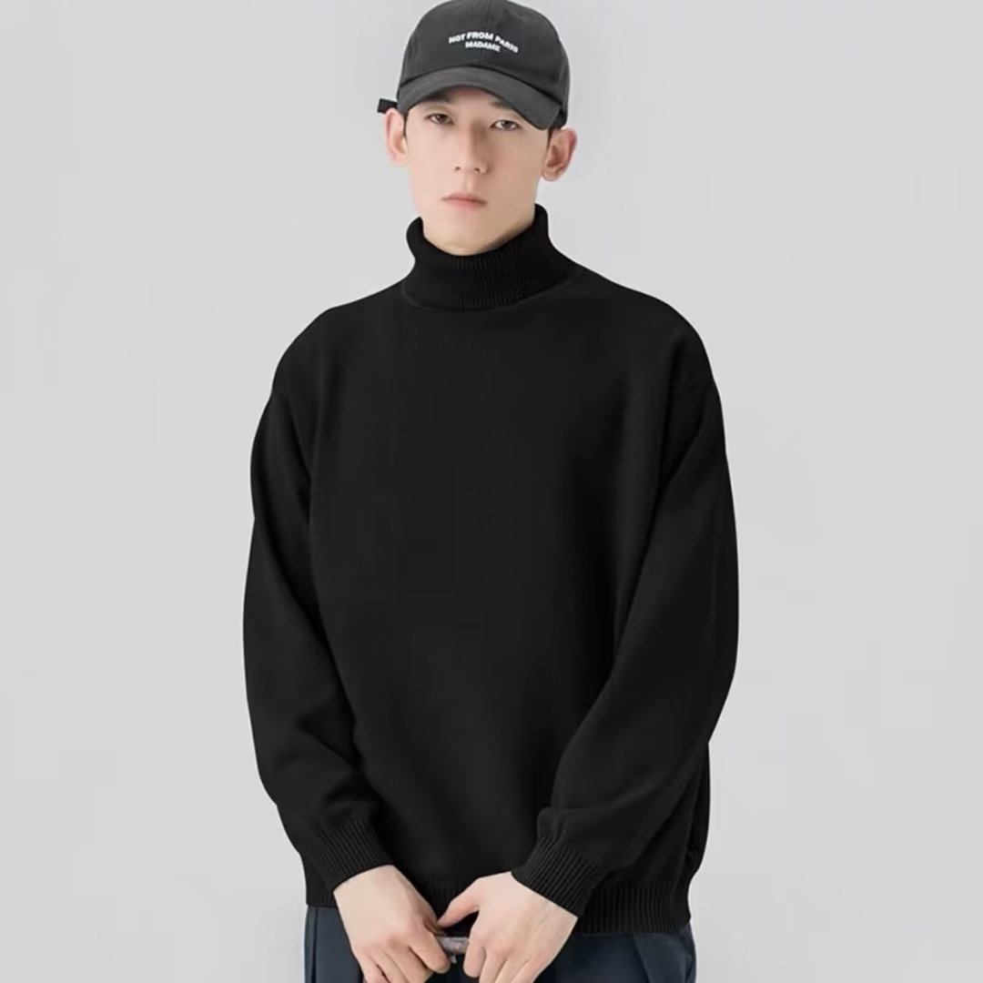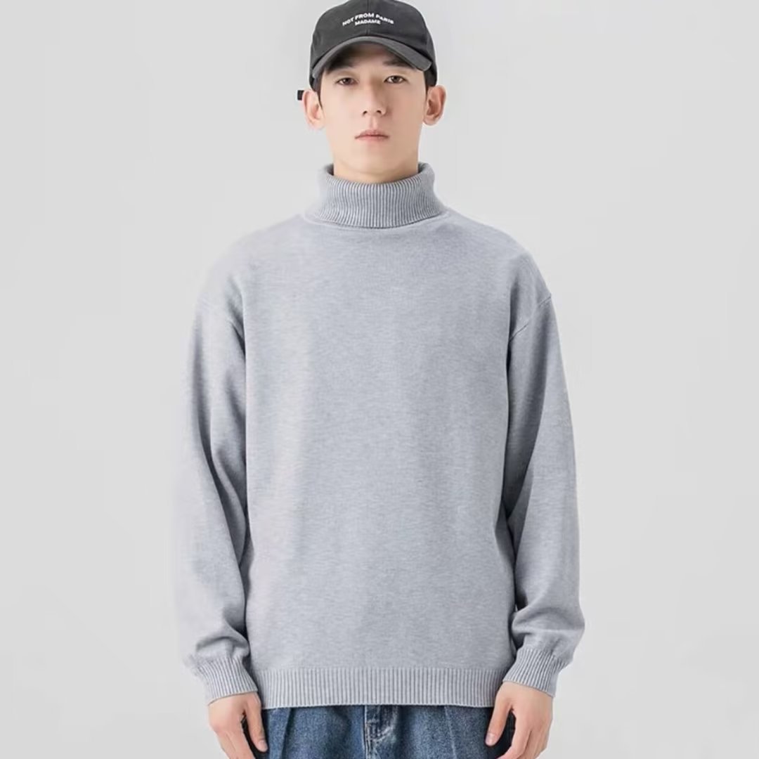 터틀넥 스웨터 남자의 기본 가을과 겨울 새로운 간단한 긴 소매 성인 느슨한 캐주얼 남자의 기모 두꺼운 니트 스웨터스토어 가기