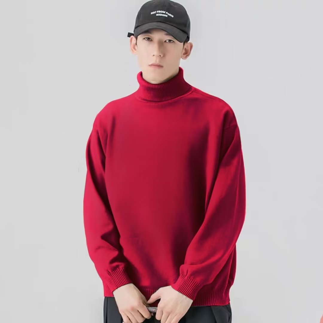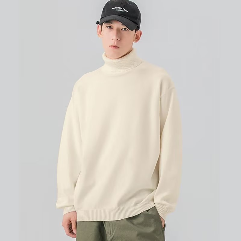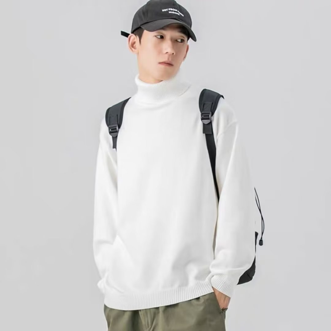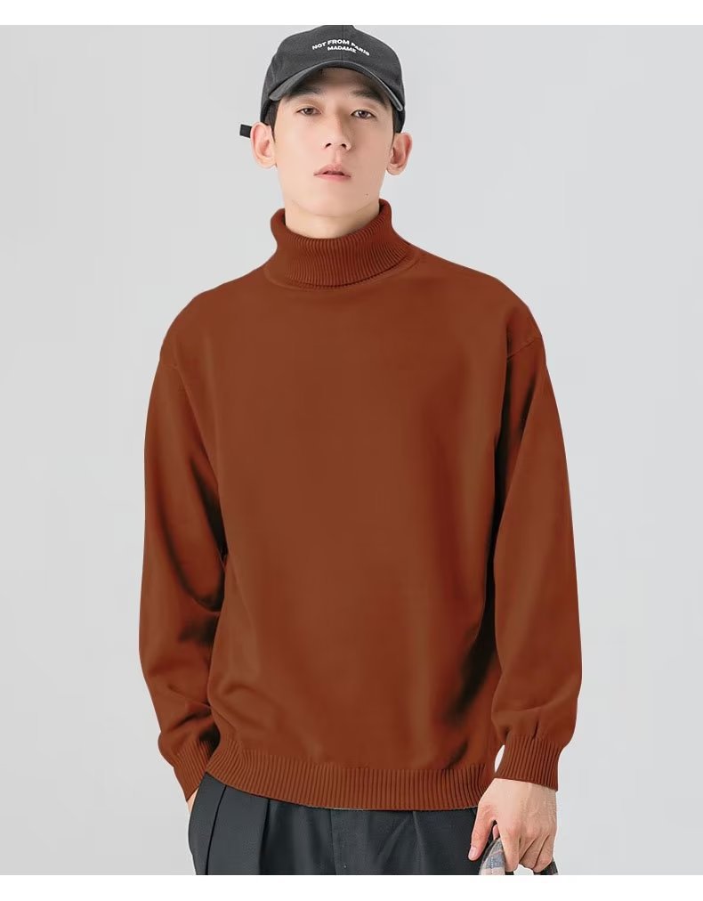 터틀넥 스웨터 남자의 기본 가을과 겨울 새로운 간단한 긴 소매 성인 느슨한 캐주얼 남자의 기모 두꺼운 니트 스웨터스토어 가기