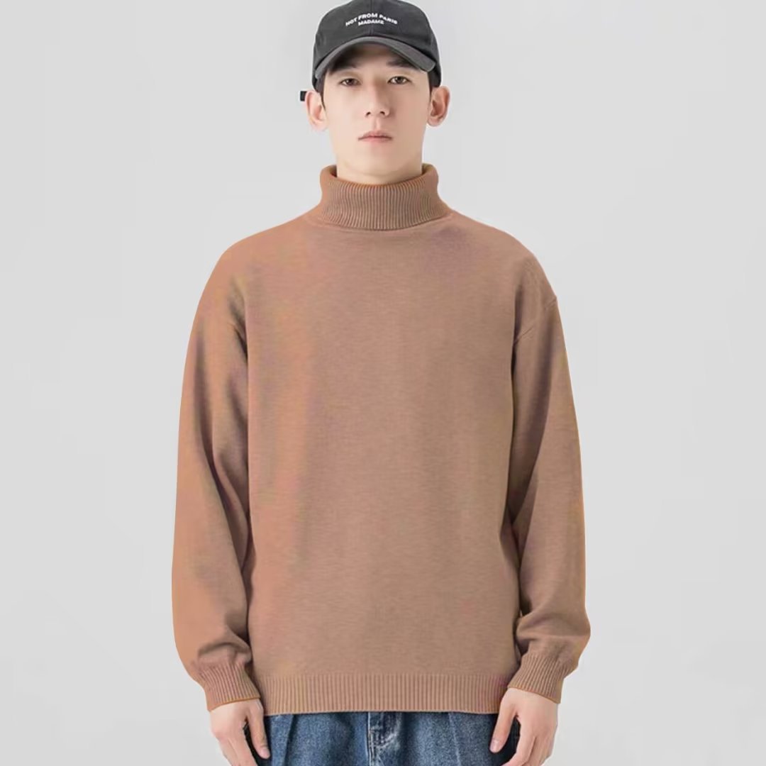 터틀넥 스웨터 남자의 기본 가을과 겨울 새로운 간단한 긴 소매 성인 느슨한 캐주얼 남자의 기모 두꺼운 니트 스웨터