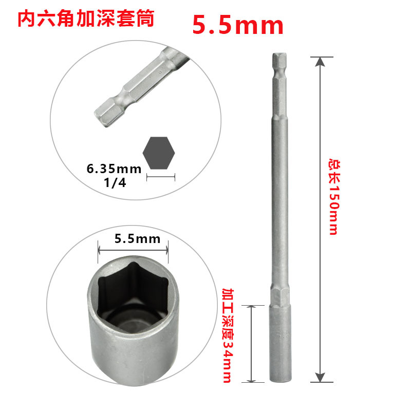 길어진 전기 드릴 소켓 헤드 5.5mm 바람 배치 소켓 헤드 깊어짐 6 육각 전동 드라이버 너트 렌치