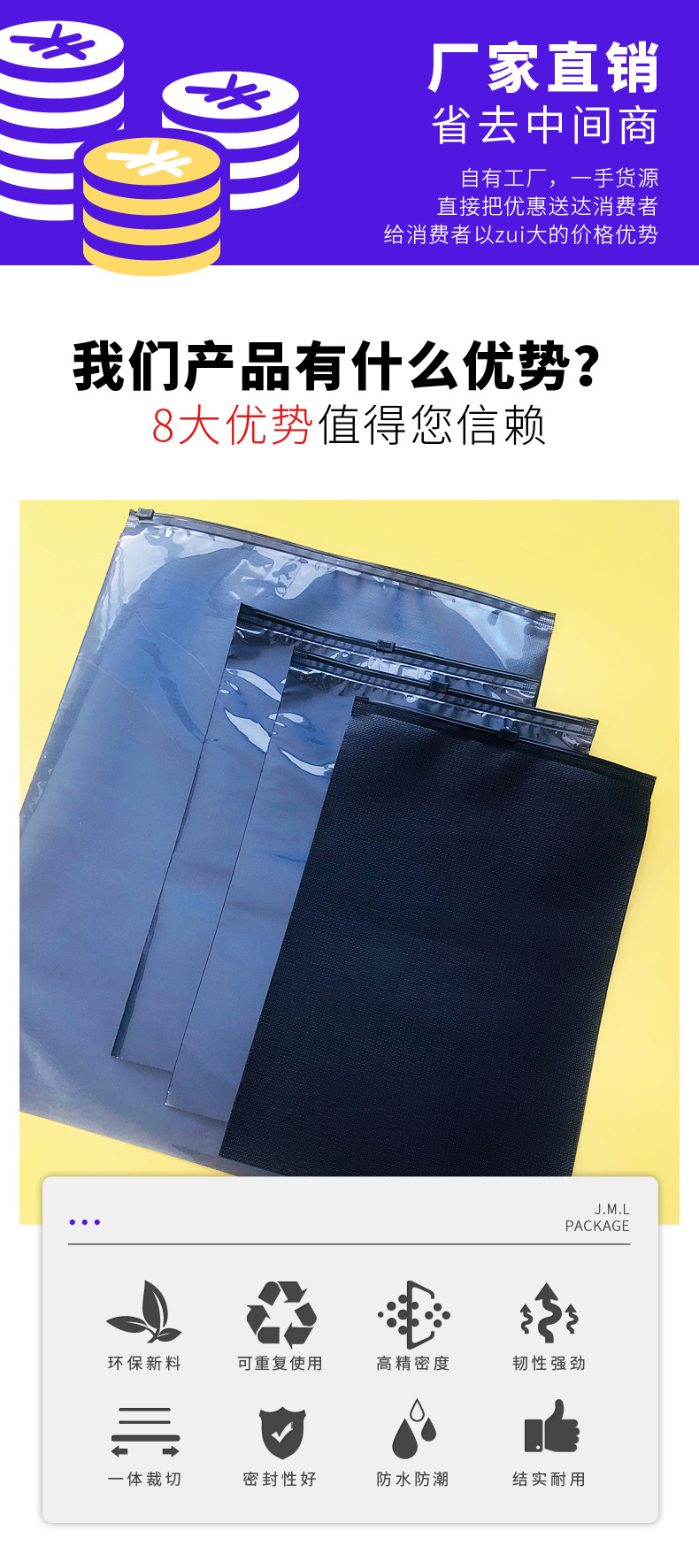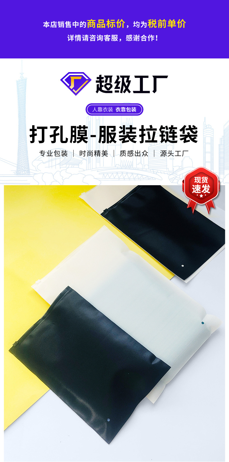 재고 도매 의류 포장 가방 미끄럼 방지 천공 필름 지퍼백 투명 범용 플라스틱 보관 의류 지퍼 가방