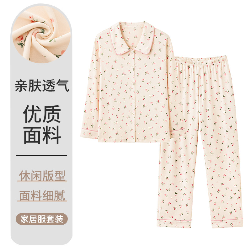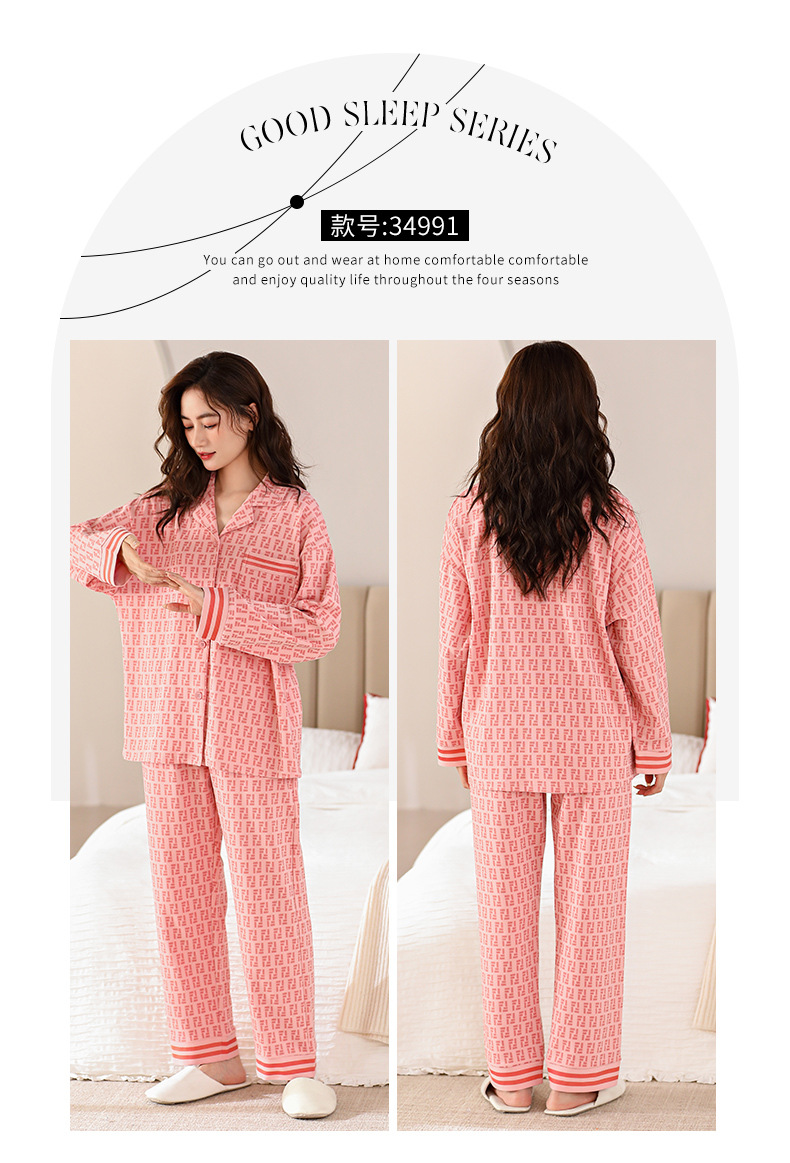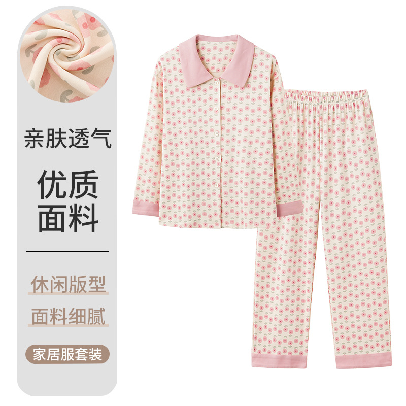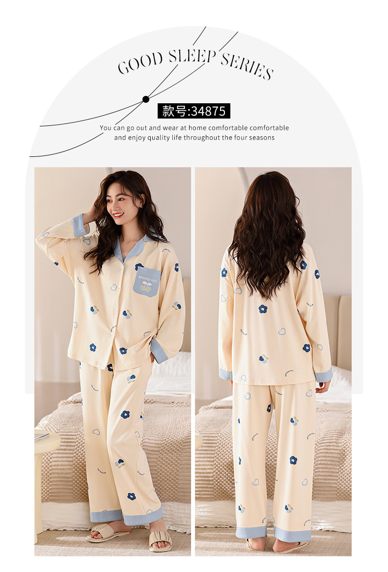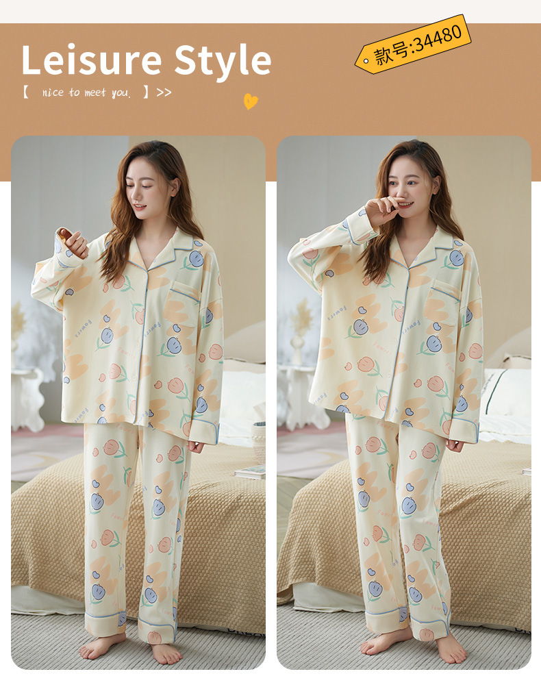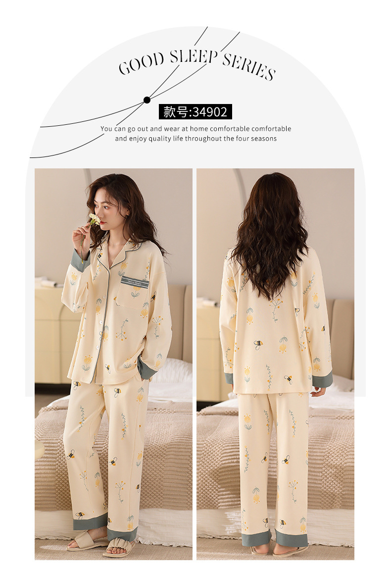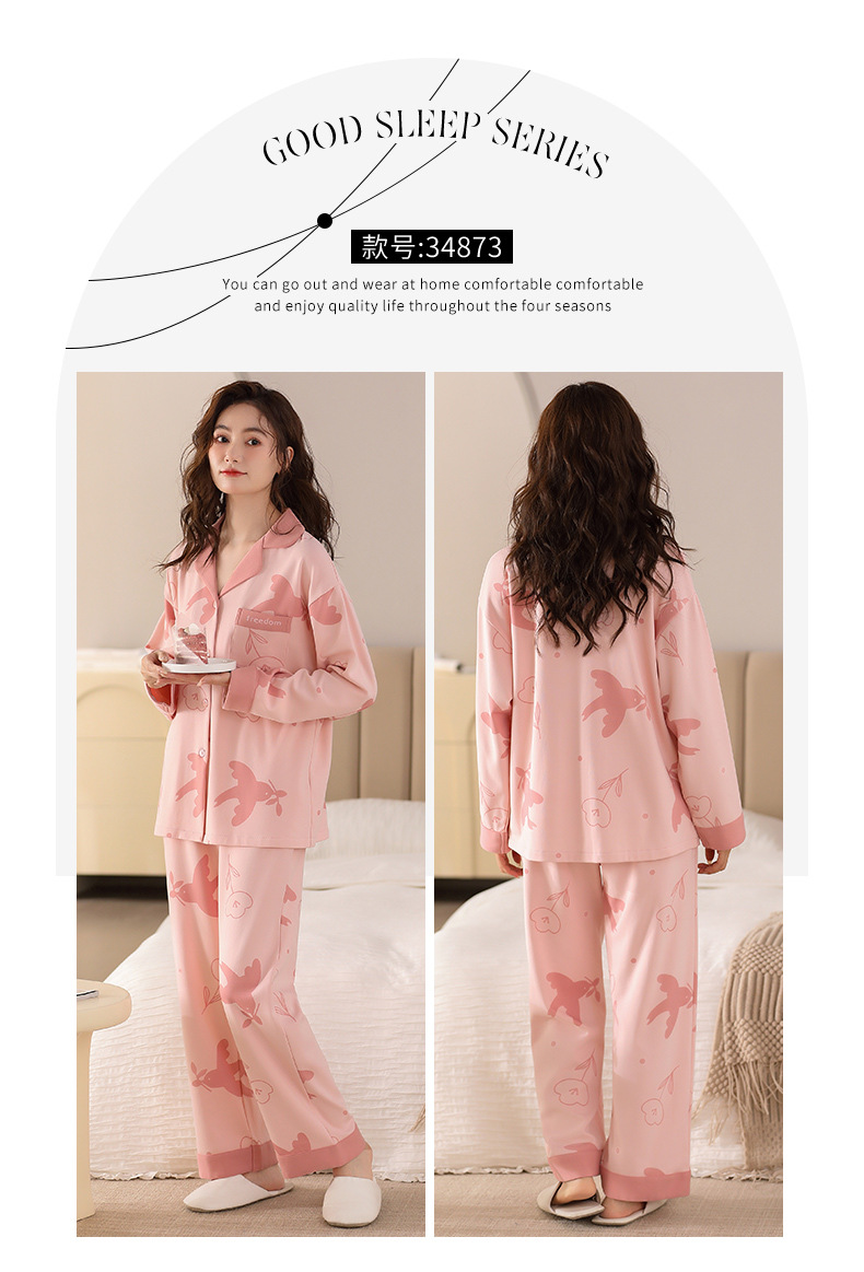 봄과 가을 잠옷 여자의 긴팔 바지 세트 봄과 가을 가정 옷 면 귀여운 만화 가을과 겨울 겉옷스토어 가기