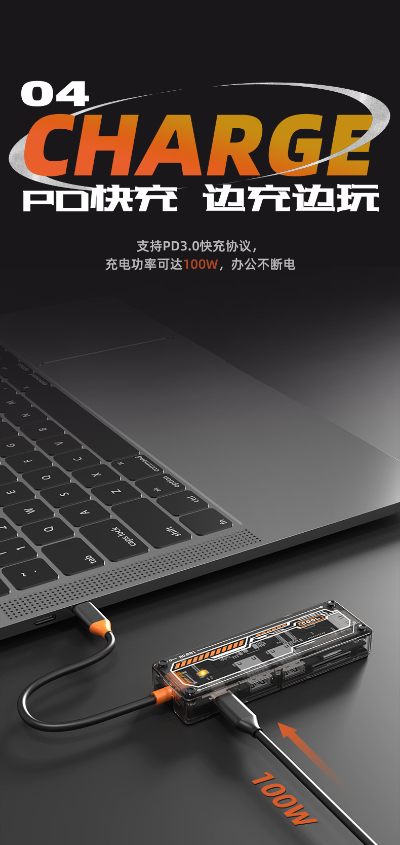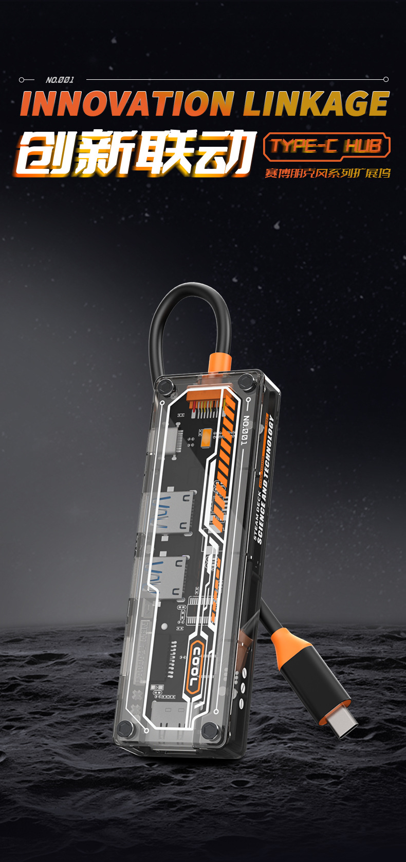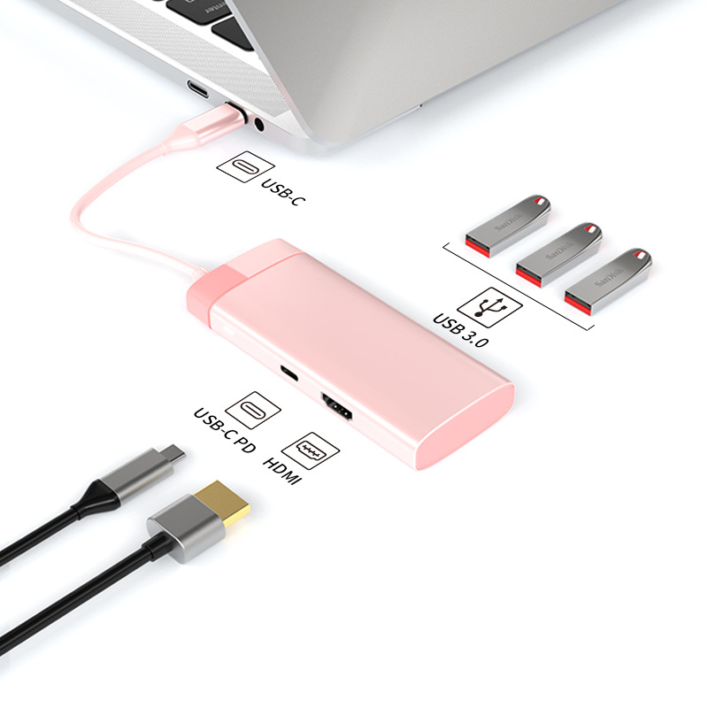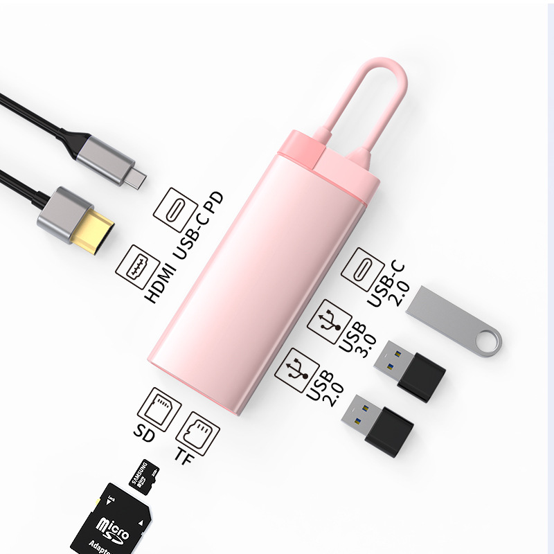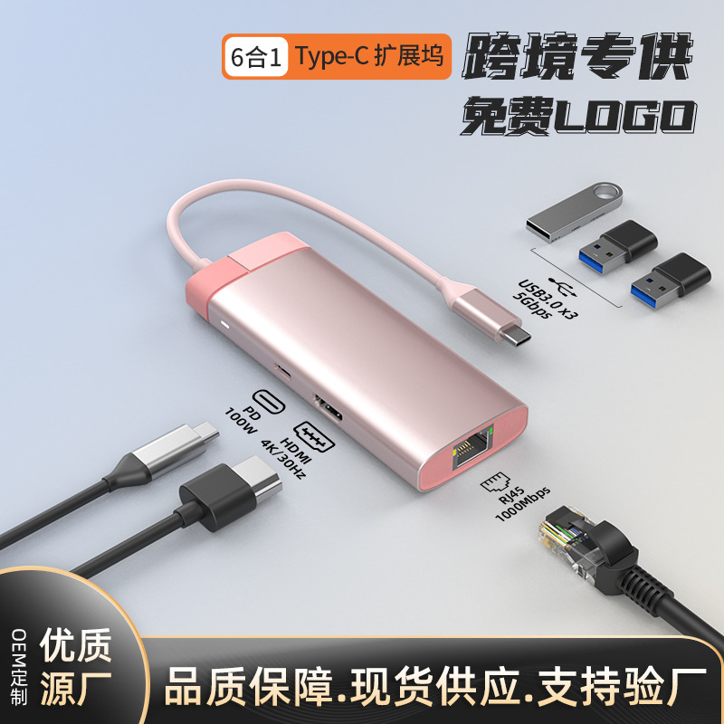 국경 간 신제품 투명한 typec 도킹 스테이션 6 in 1usbhub 허브 다기능 노트북 USB 익스텐더