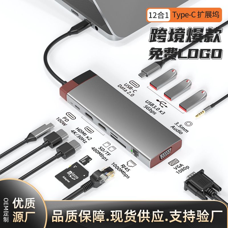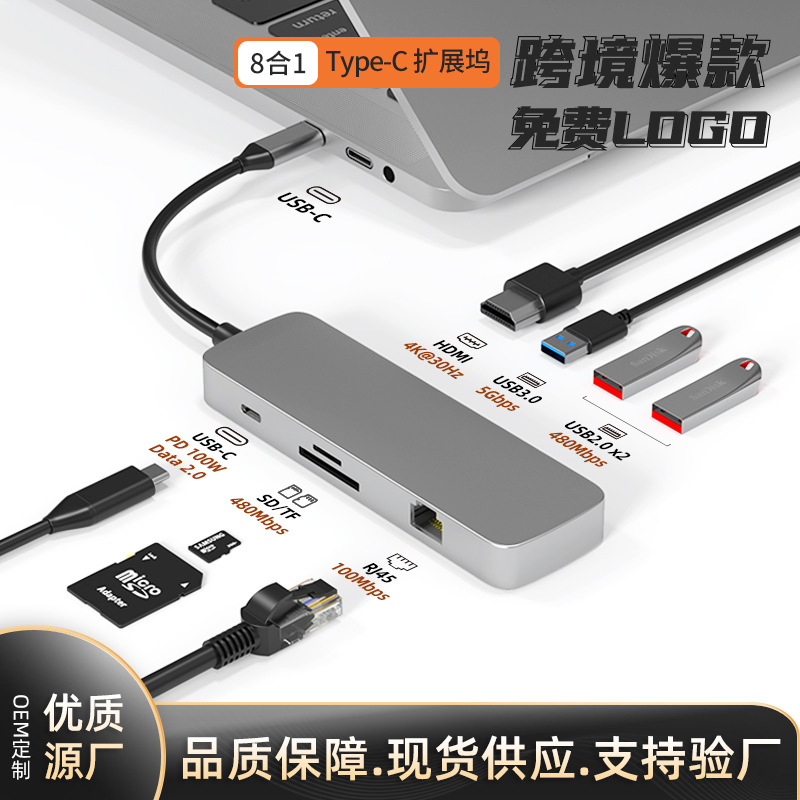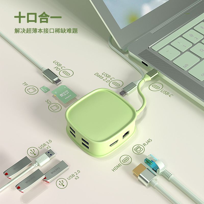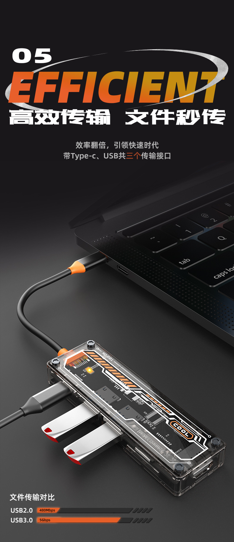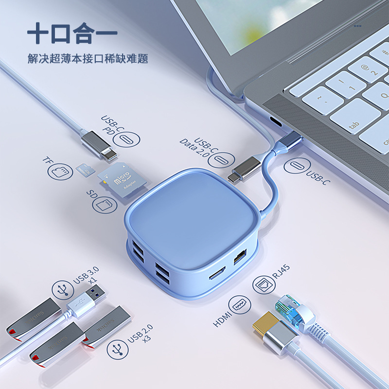 국경 간 신제품 투명한 typec 도킹 스테이션 6 in 1usbhub 허브 다기능 노트북 USB 익스텐더