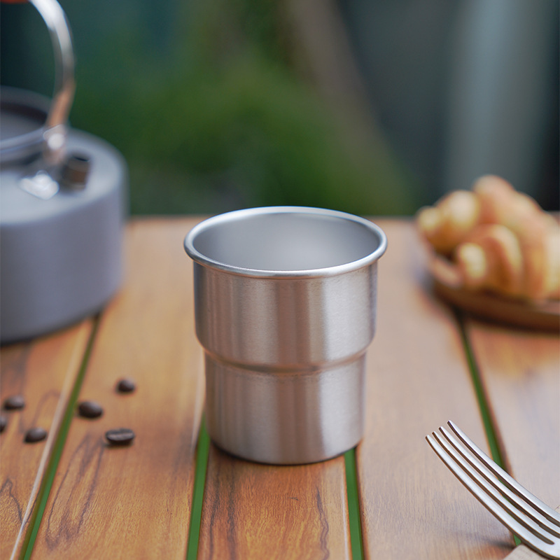 단일 레이어 304 스테인레스 스틸 컬링 사다리 맥주 컵 야외 캠핑 커피 단계 컵 휴대용 쌓을 수있는 입 컵