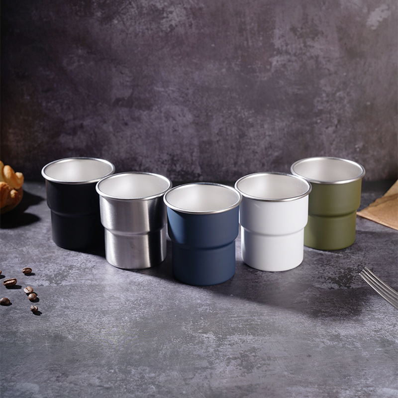 단일 레이어 304 스테인레스 스틸 컬링 사다리 맥주 컵 야외 캠핑 커피 단계 컵 휴대용 쌓을 수있는 입 컵스토어 가기