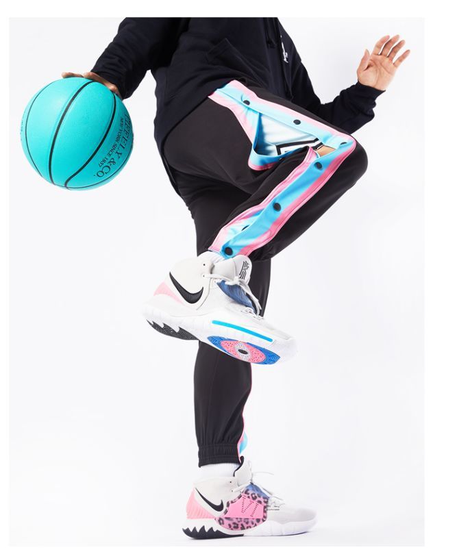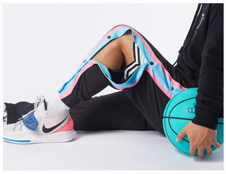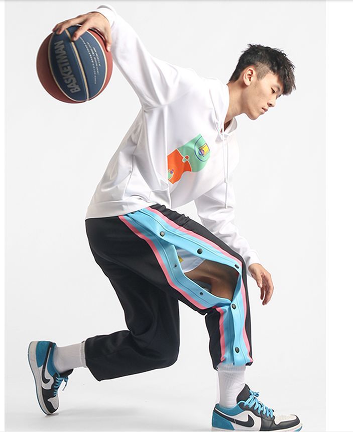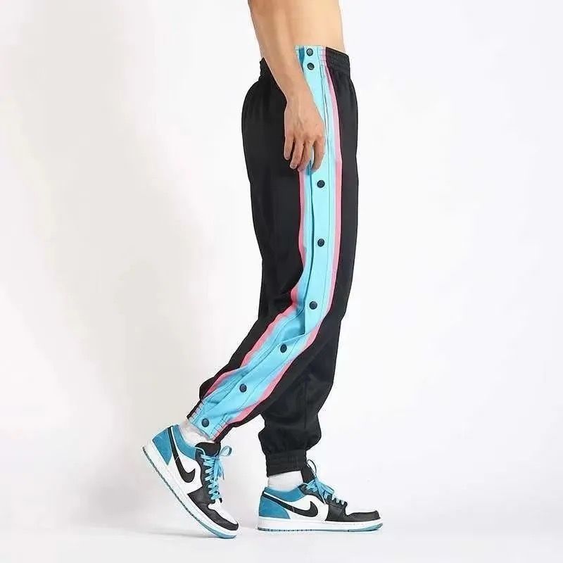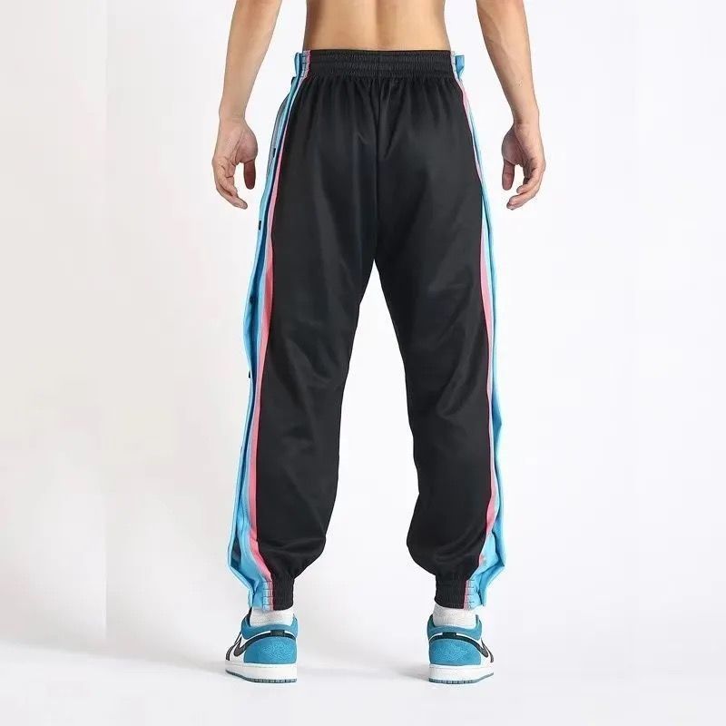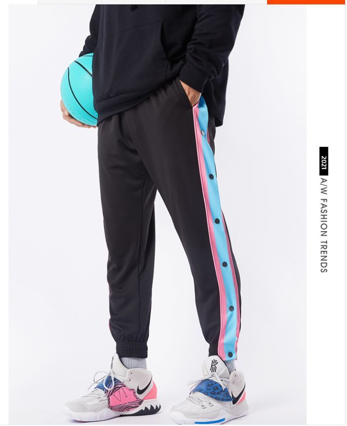 유럽과 미국의 가슴 바지 남성용 풀 오픈 느슨한 트렌드 와이드 레그 사이드 버튼 캐주얼 발가락 농구 훈련 스포츠 바지