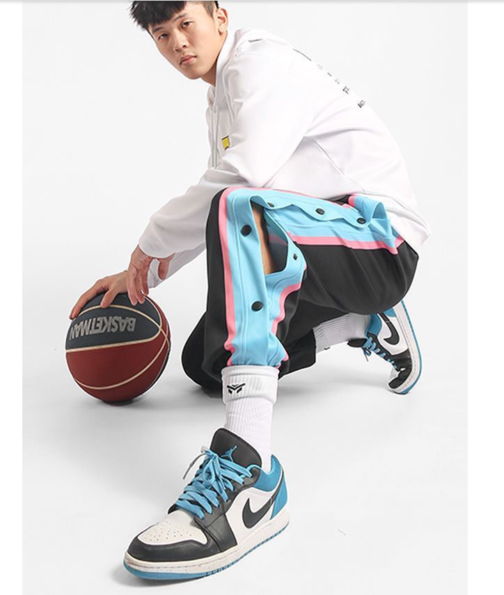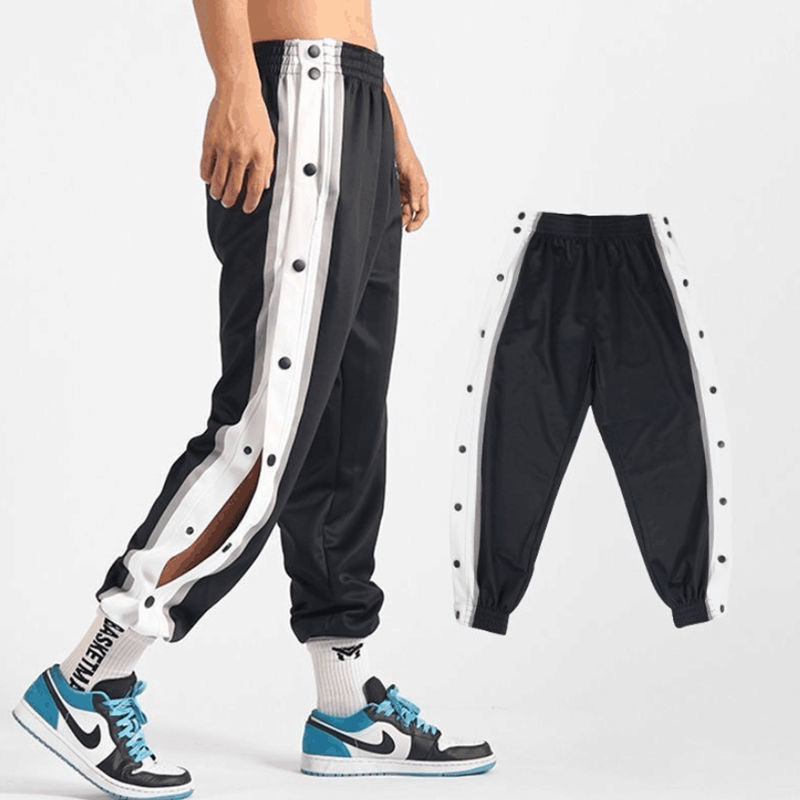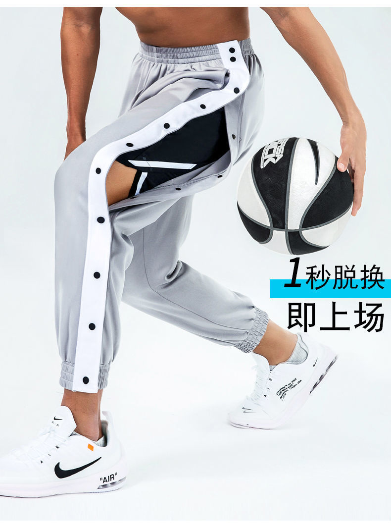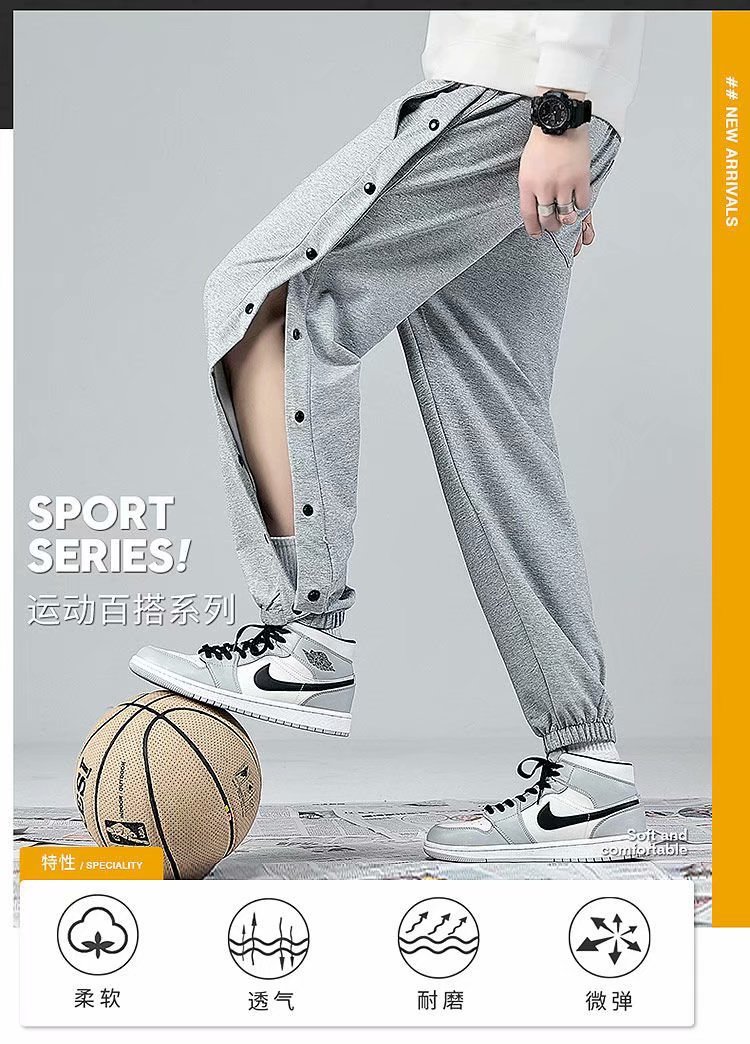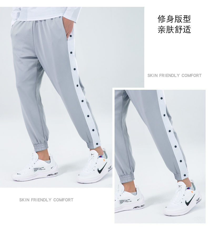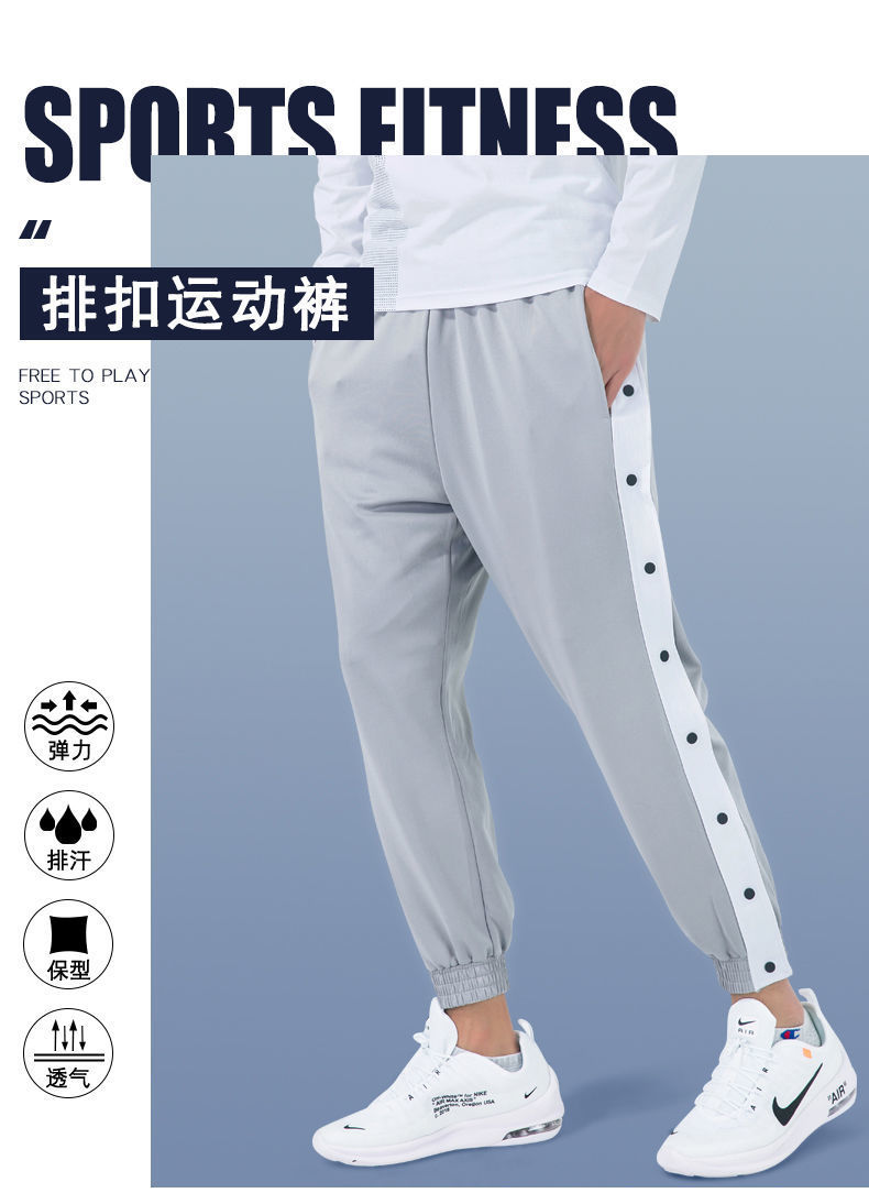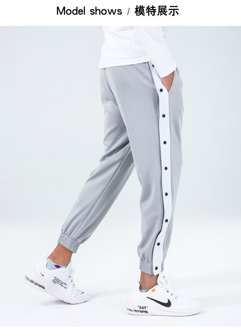 유럽과 미국의 가슴 바지 남성용 풀 오픈 느슨한 트렌드 와이드 레그 사이드 버튼 캐주얼 발가락 농구 훈련 스포츠 바지스토어 가기