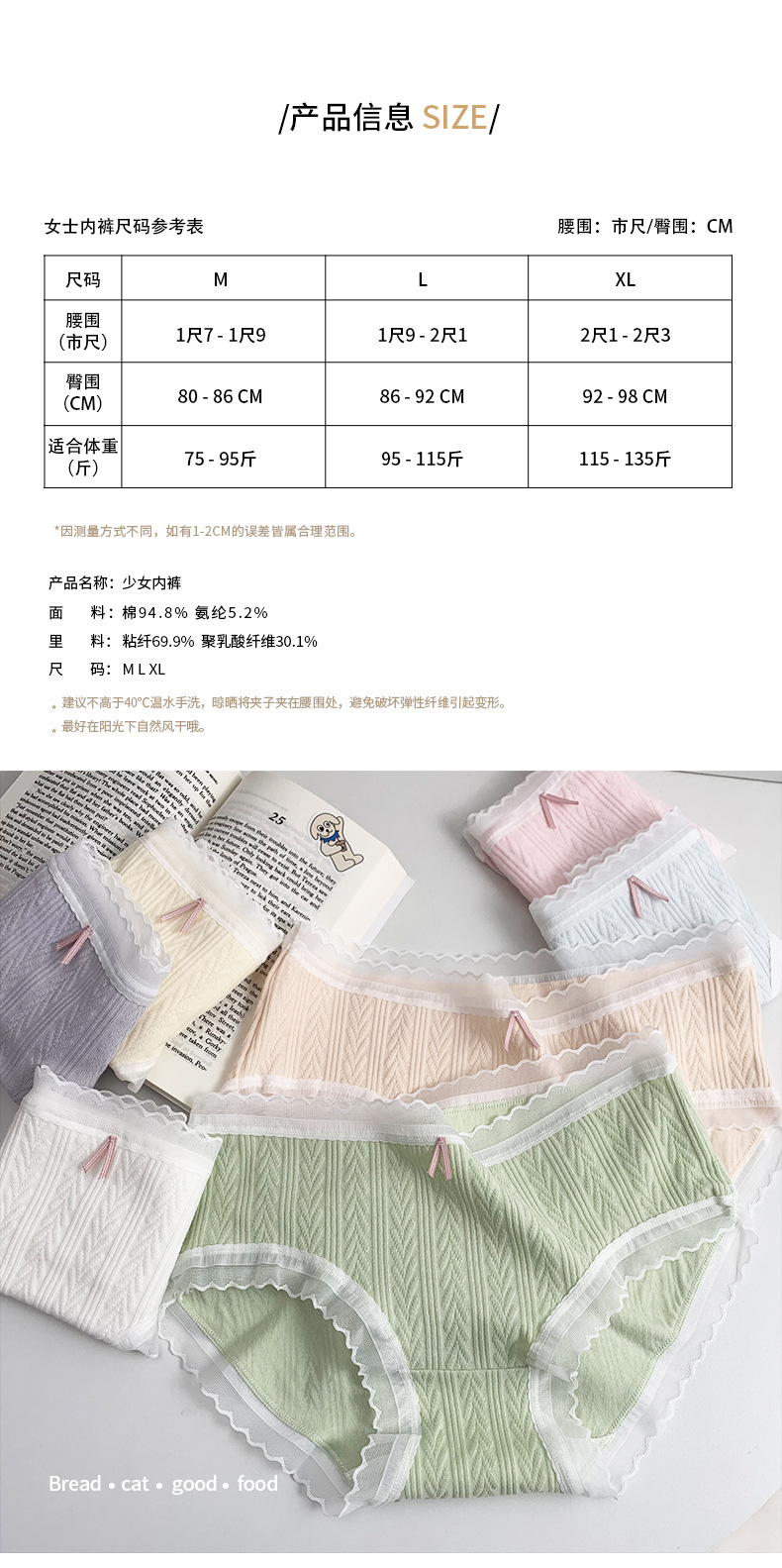 원래 Meina 사랑 자카드 폴리 유산 기능 가랑이 우유 중간 허리 속옷 여성 중간 허리 학생 속옷 여성 도매