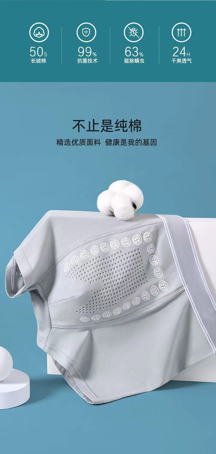 남성용 속옷, 남성용 대형 사이즈 순면 항균 통기성 사각 팬티, 음이온 함유, 통기성 및 항균 기능