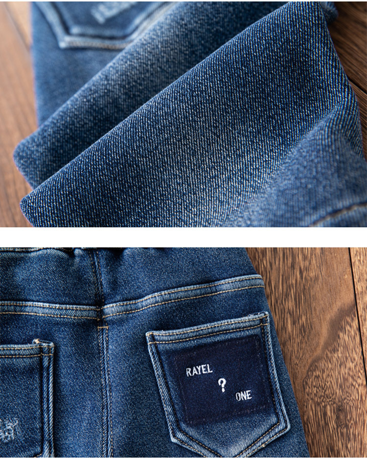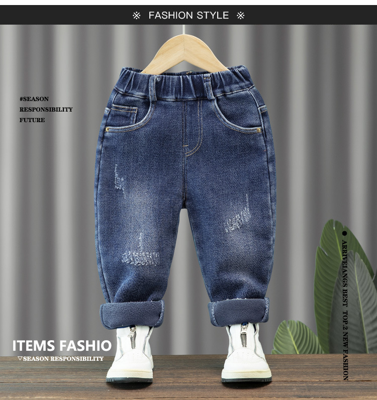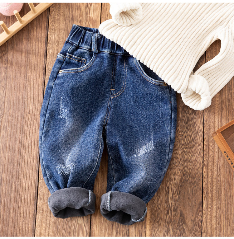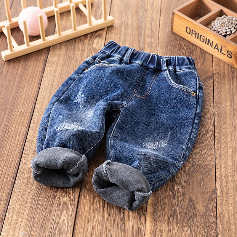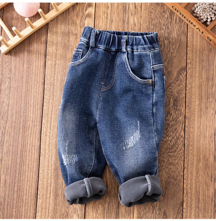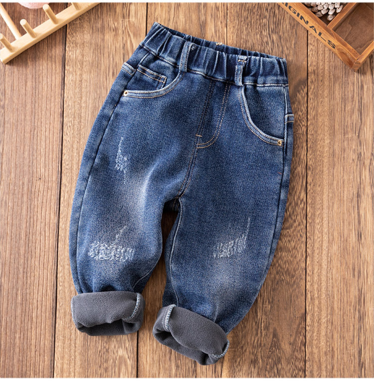남아 청바지 겨울 기모 두꺼운 새로운 한국 스타일 어린이 느슨한 원피스 벨벳 아기 만능 따뜻한 바지