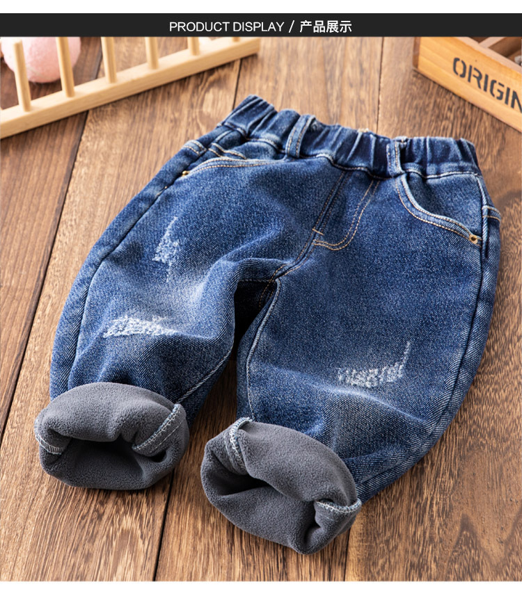 남아 청바지 겨울 기모 두꺼운 새로운 한국 스타일 어린이 느슨한 원피스 벨벳 아기 만능 따뜻한 바지스토어 가기
