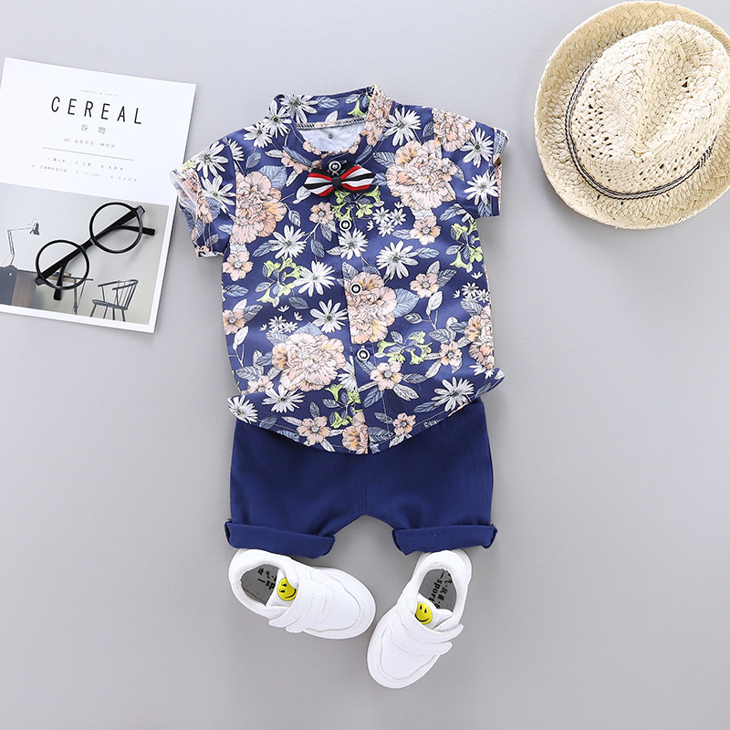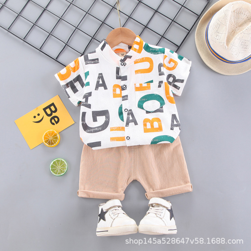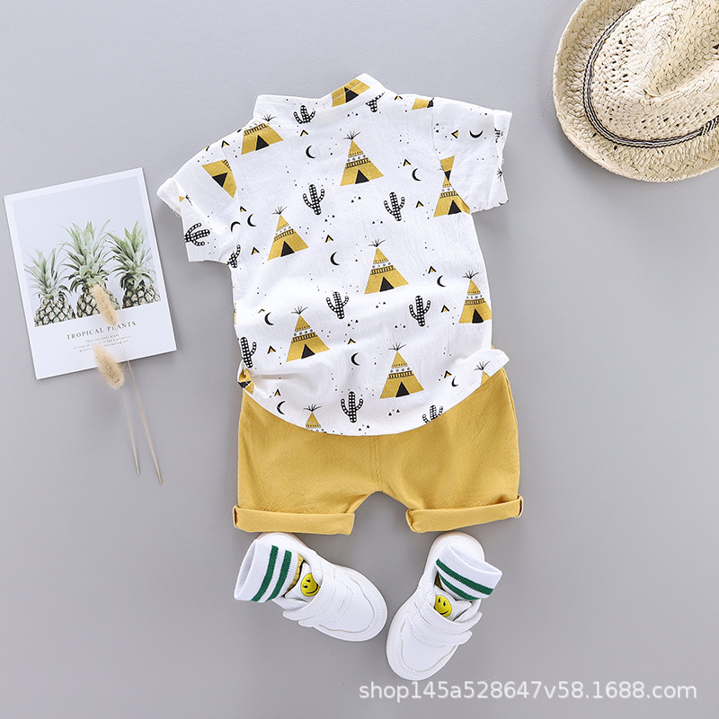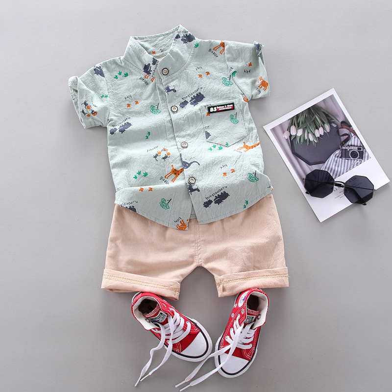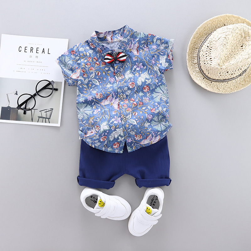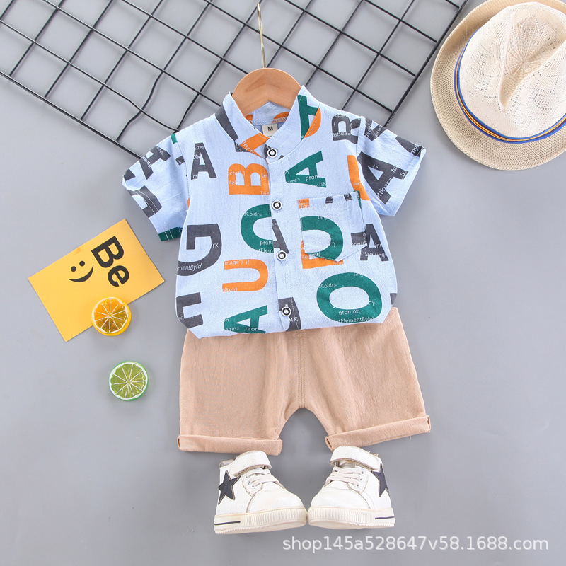 크로스 보더 반팔 소년 여름 아동복 새 옷 아기 만화 어린이 셔츠 어린이 2 피스 여름 잘 생긴스토어 가기