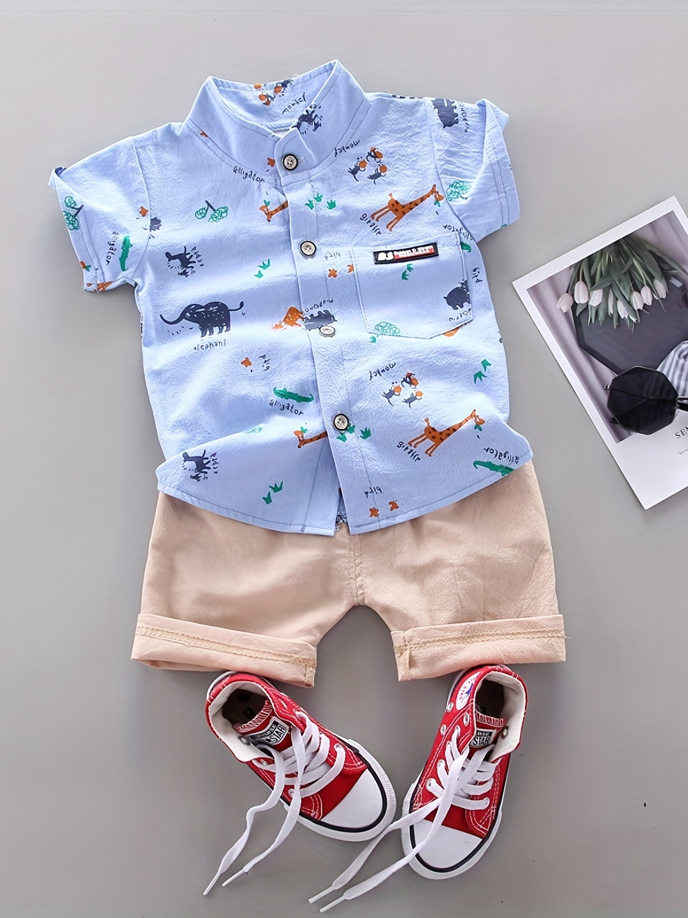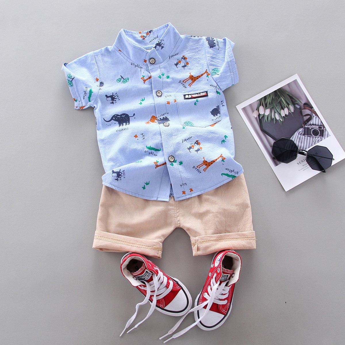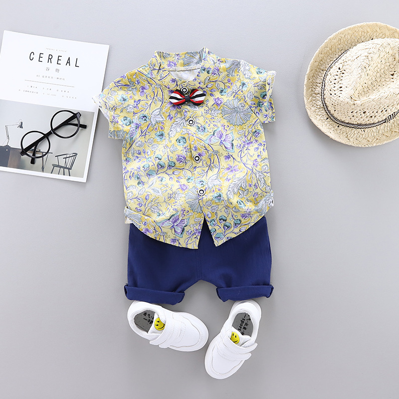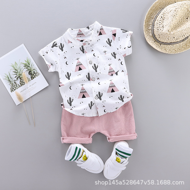 크로스 보더 반팔 소년 여름 아동복 새 옷 아기 만화 어린이 셔츠 어린이 2 피스 여름 잘 생긴스토어 가기