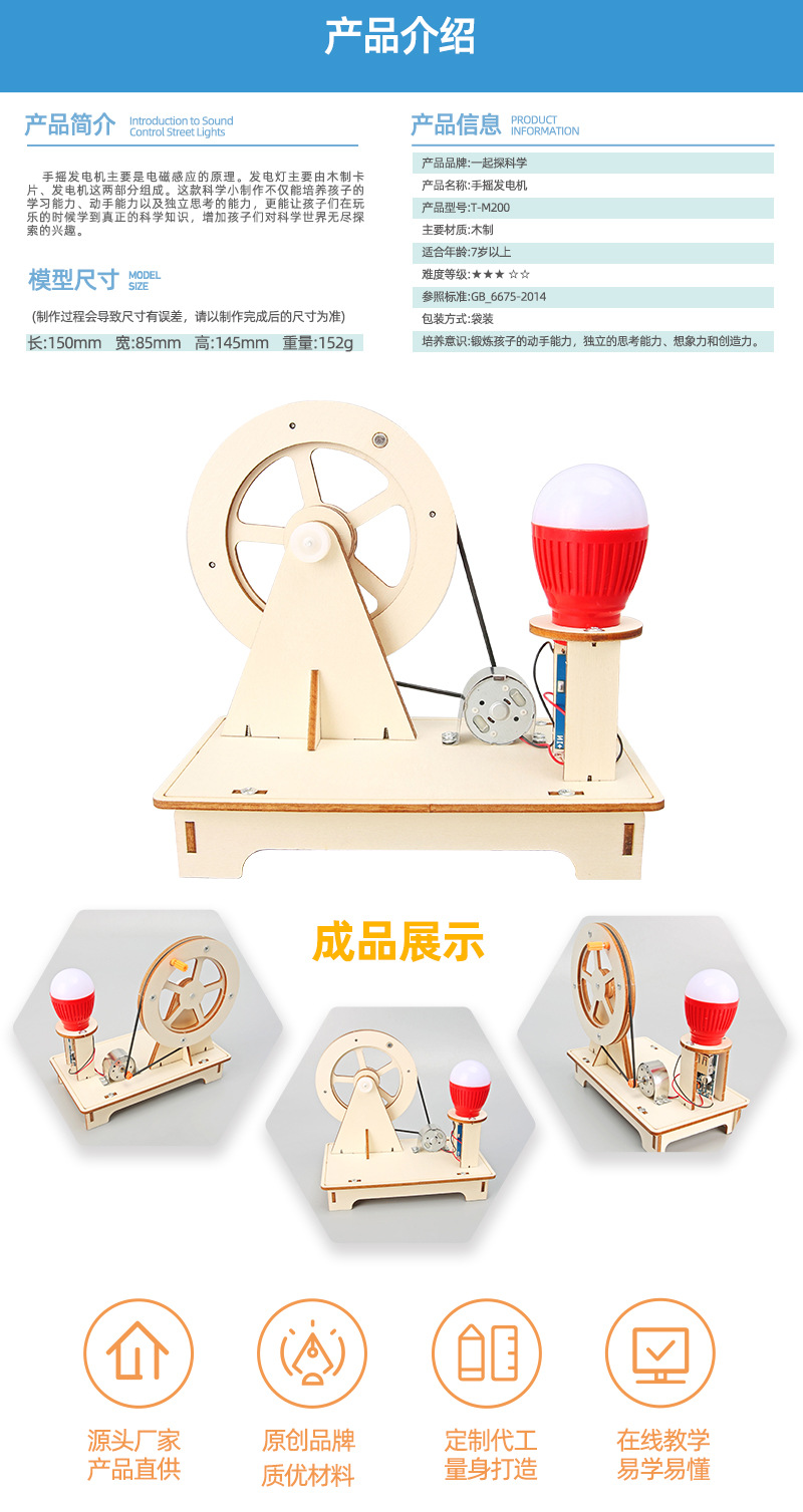 과학 실험 핸드 크랭크 발전기 학생 과학 기술 소제작 어린이 창의 발명 매뉴얼 diy 장치 재료 패키지스토어 가기