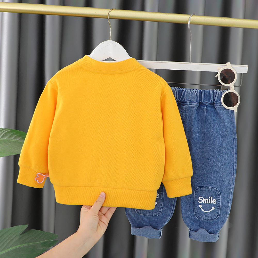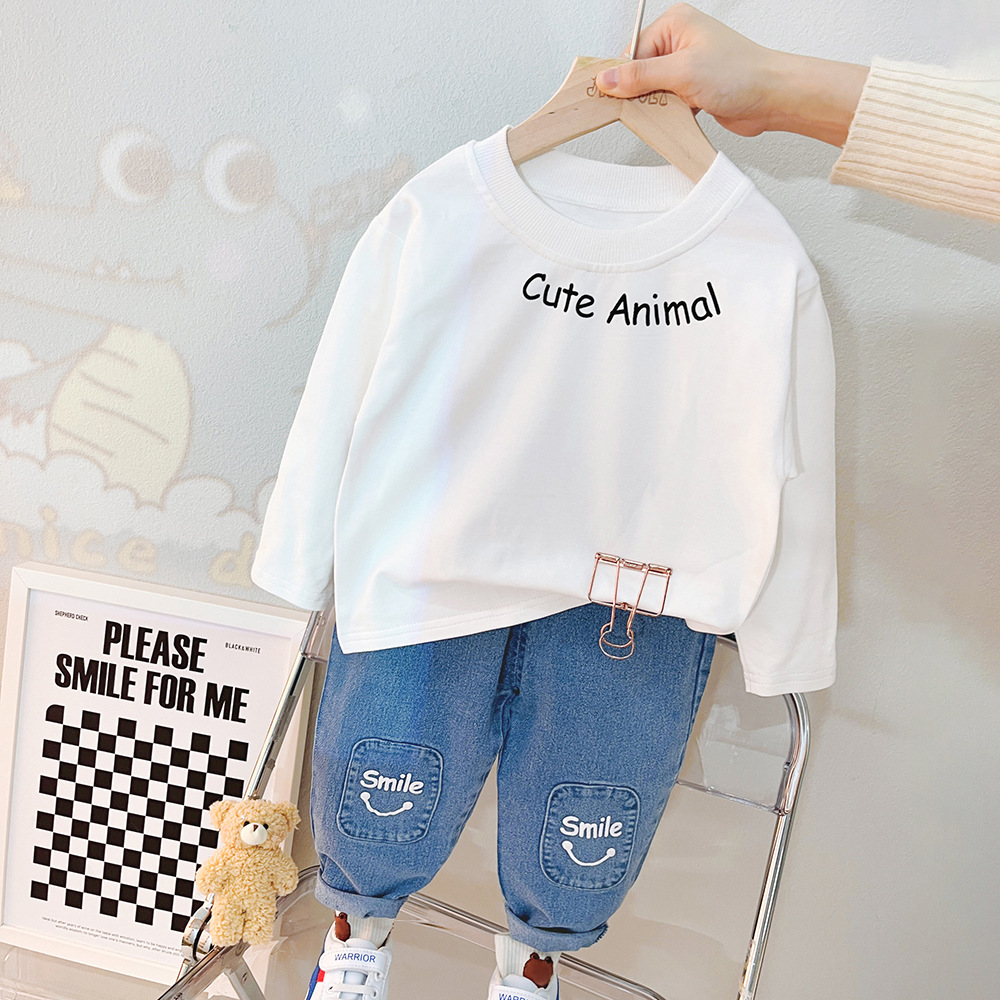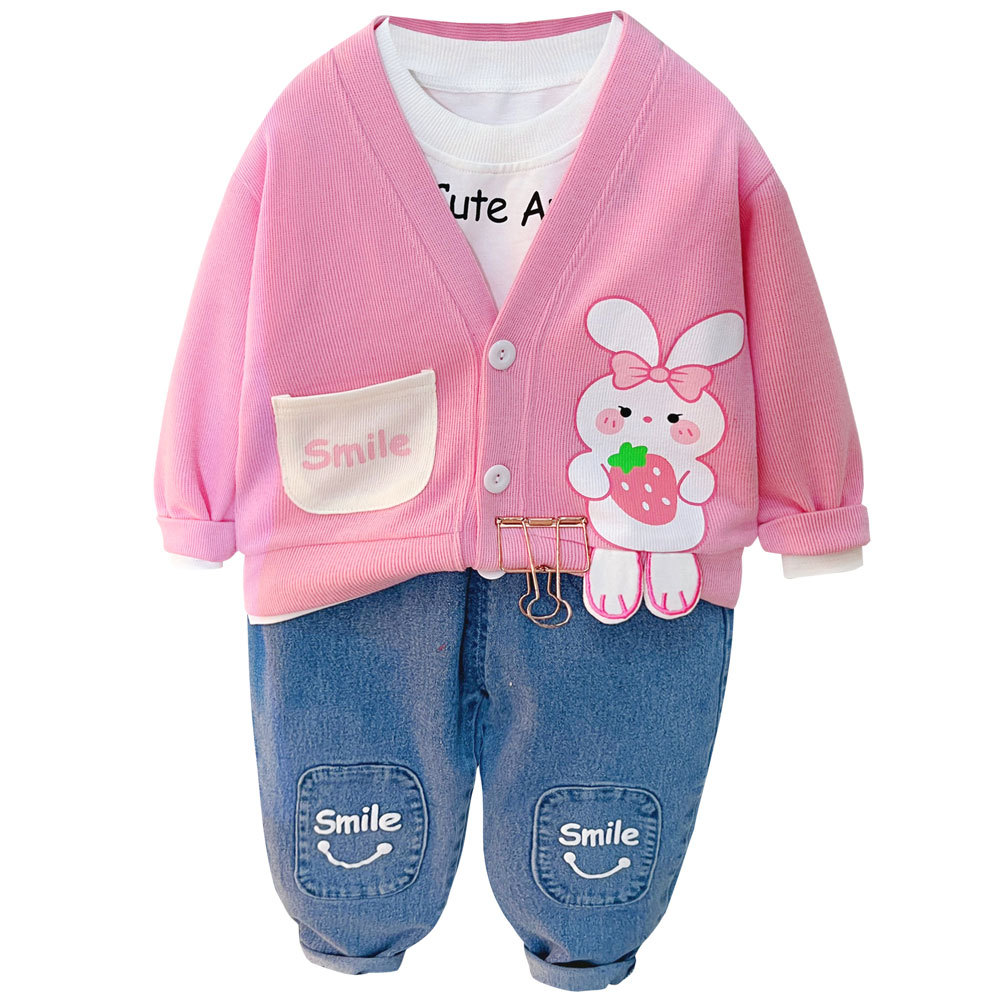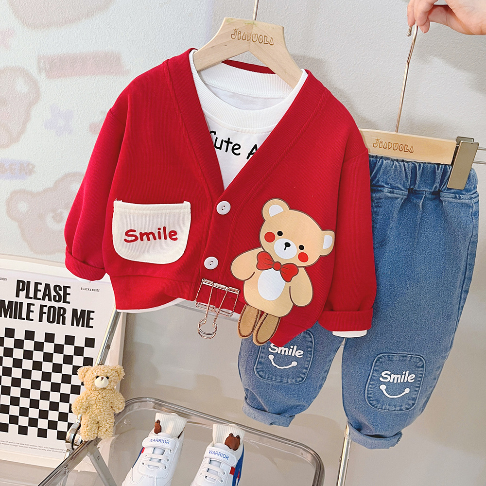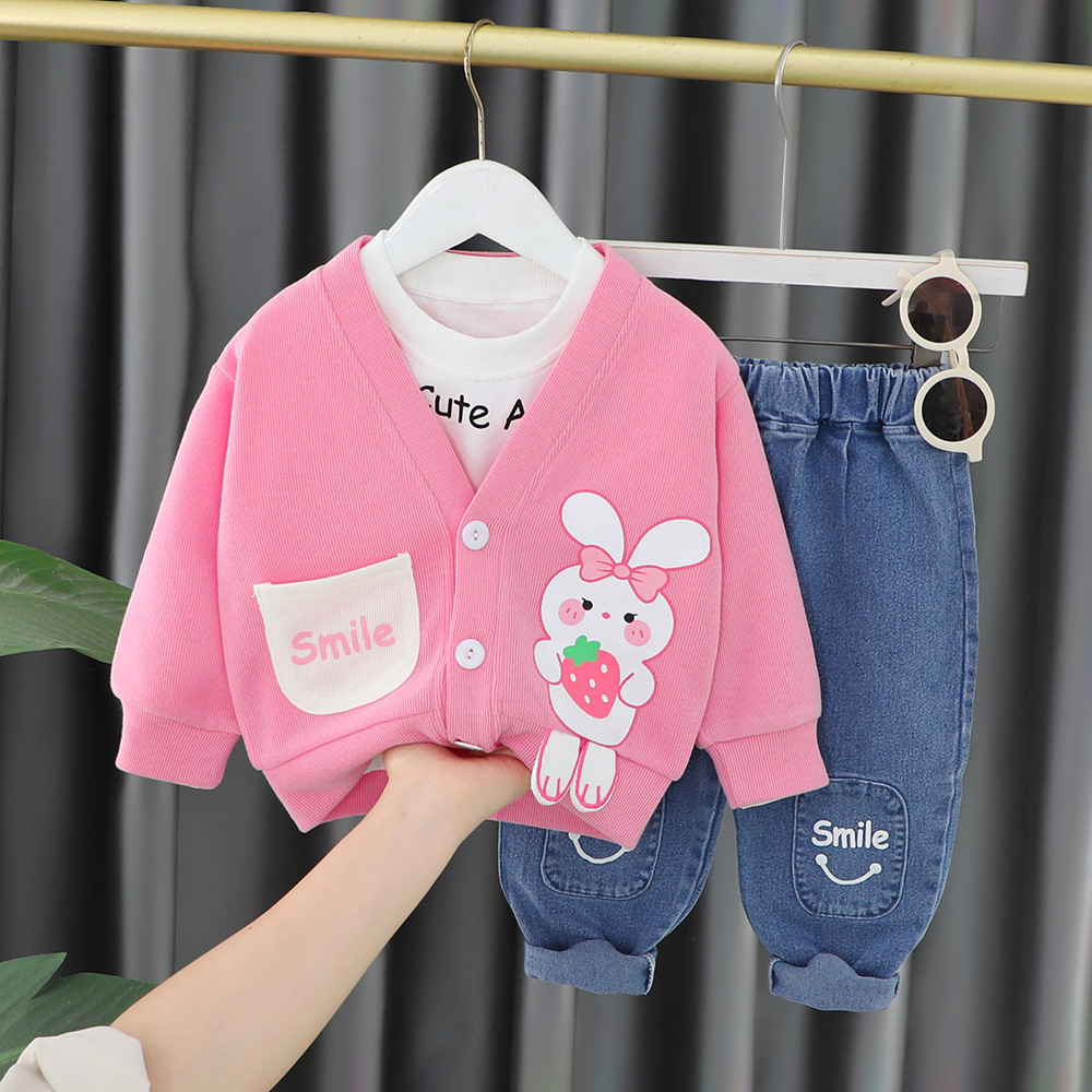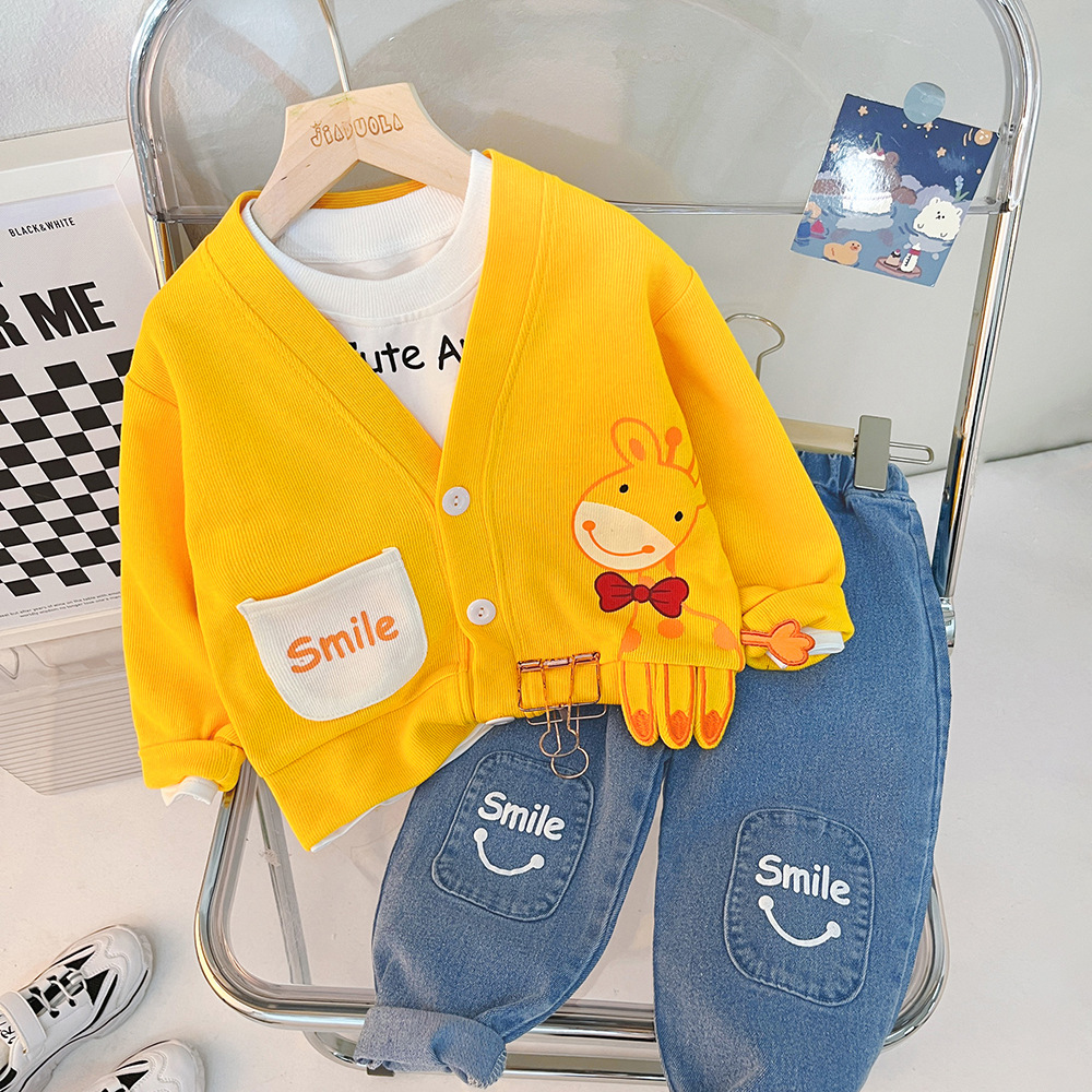 여자 아동 봄 세트 소년 2023 새로운 봄 카디건 코트 3 피스 웨스턴 스타일 아기 아동복 2118