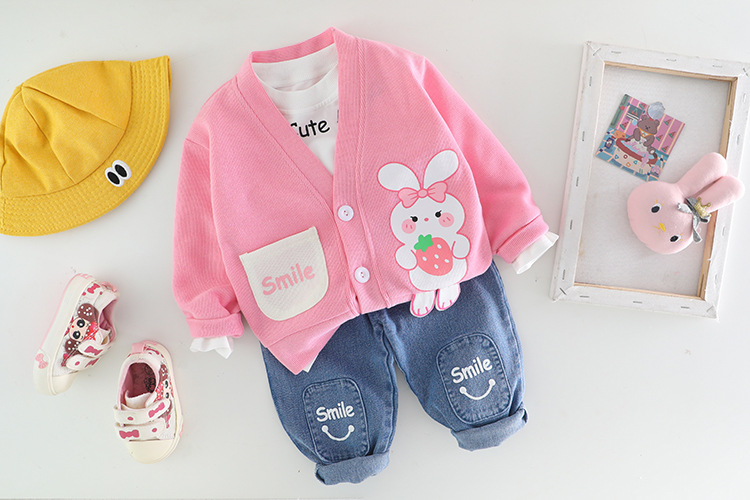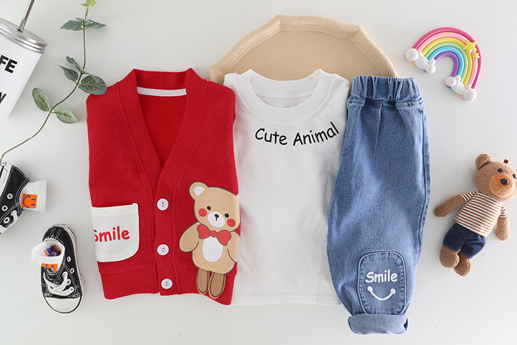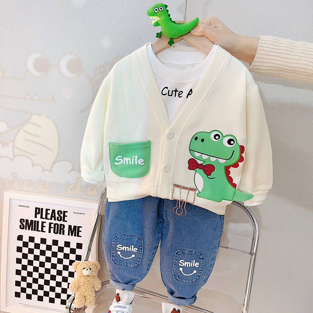 여자 아동 봄 세트 소년 2023 새로운 봄 카디건 코트 3 피스 웨스턴 스타일 아기 아동복 2118스토어 가기
