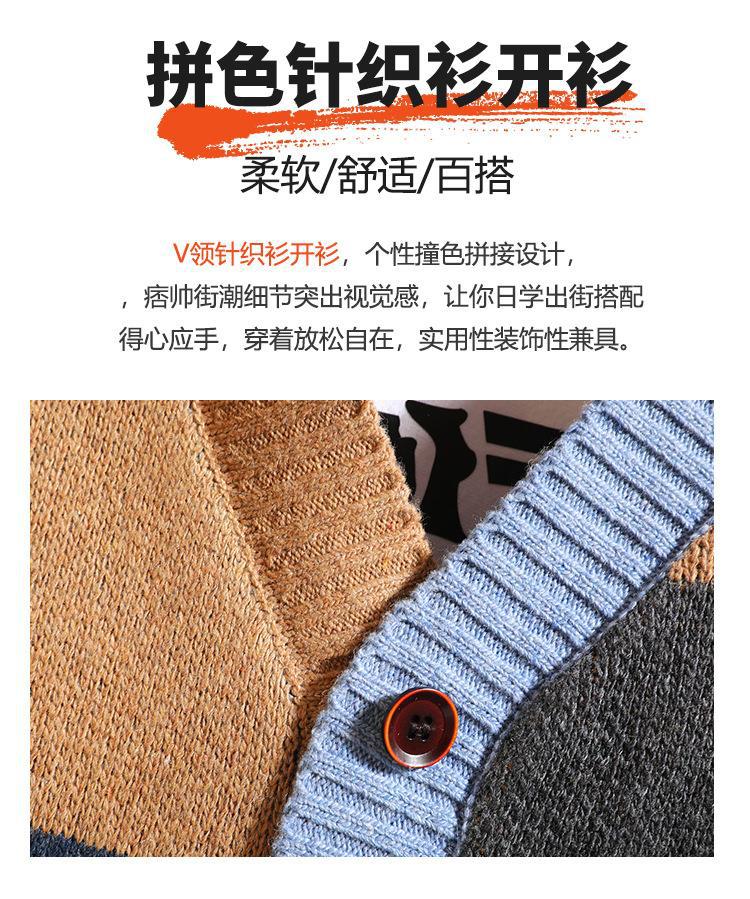 크로스 보더 2023 봄과 가을 홍콩 스타일 새로운 남성용 대비 스웨터 카디건 스티칭 V-넥 니트 스웨터 남성용 플러스 사이즈 재킷스토어 가기