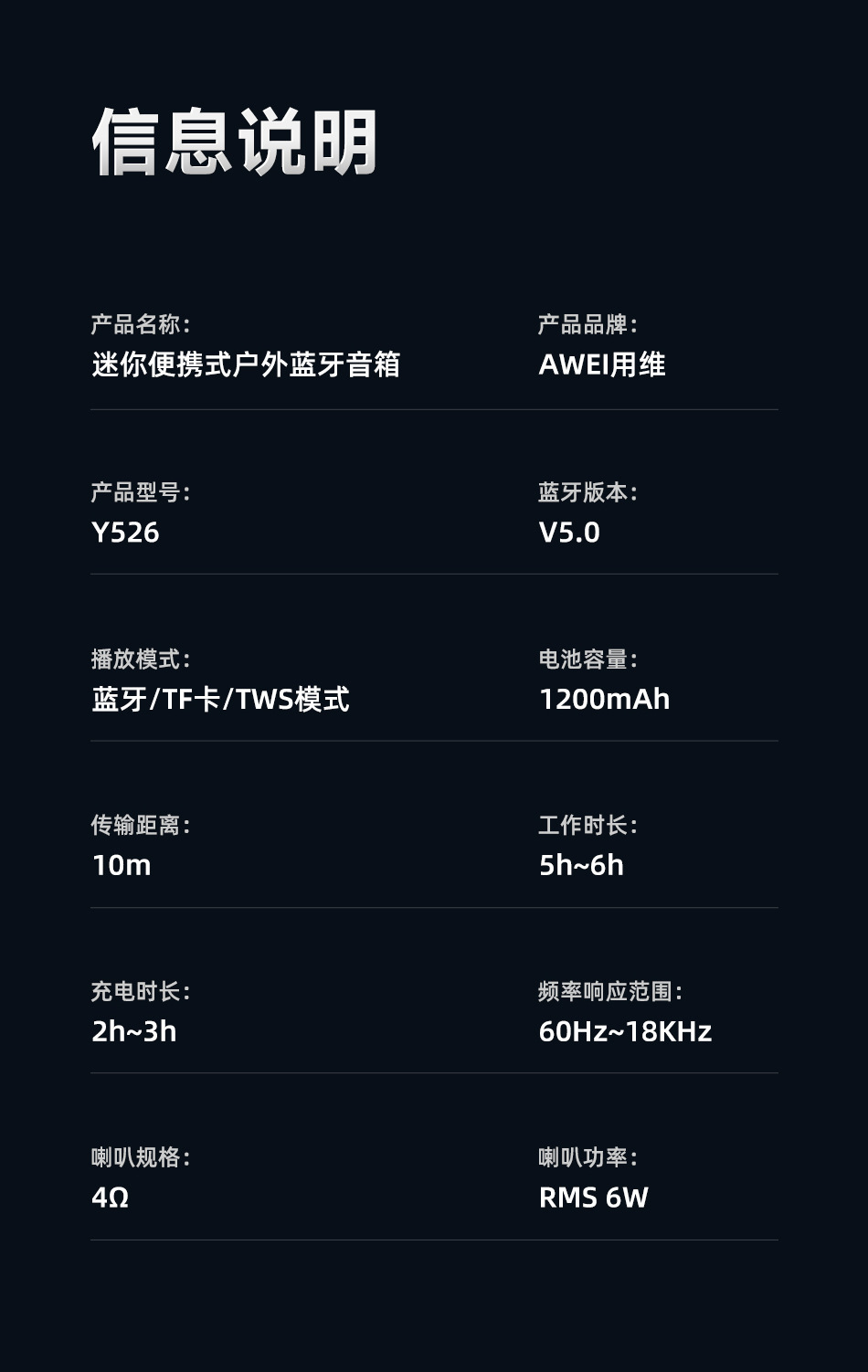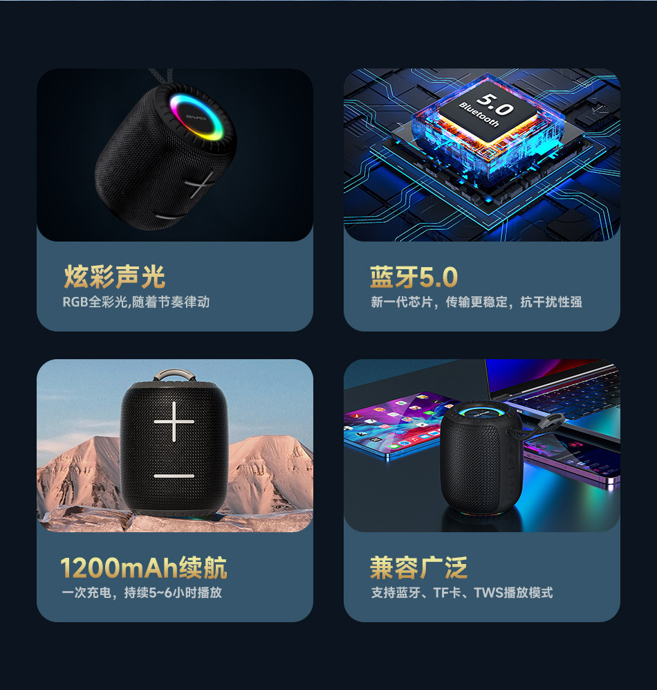 W용위 신형 야외 휴대용 블루투스 스피커 Y526 화려한 조명 효과 고품질 HiFi 음질 오디오스토어 가기