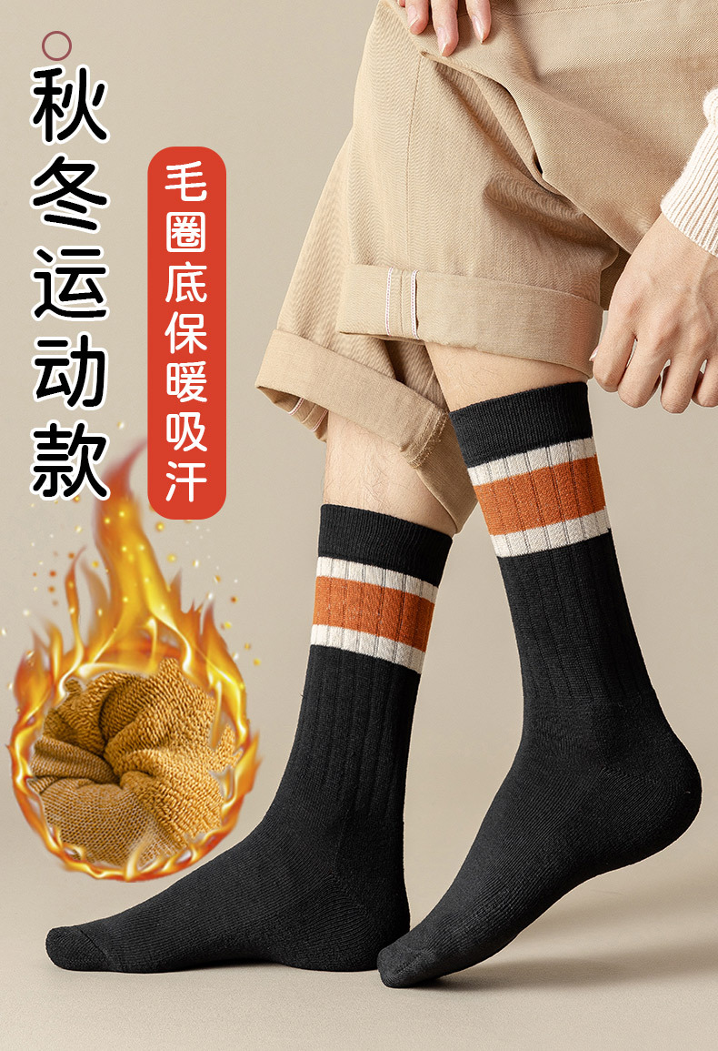 스포츠 스타킹 남성 가을과 겨울 두꺼운 따뜻한 기모 면 높은 튜브 테리 바닥 양말 땀 흡수 통기성 긴 튜브 양말