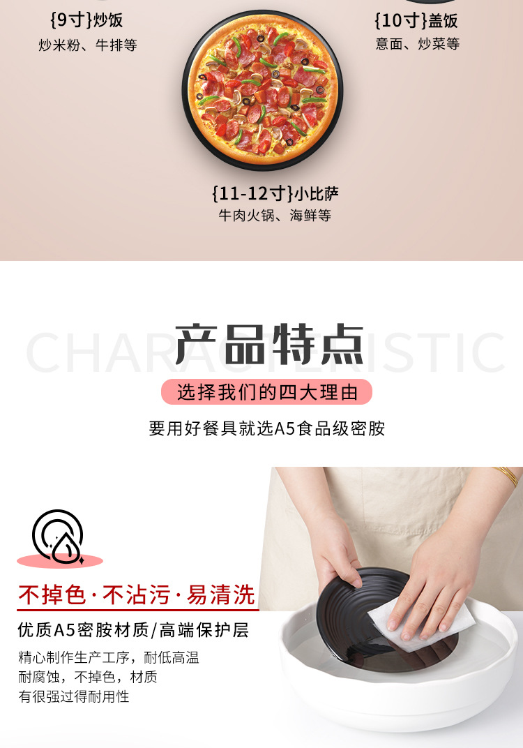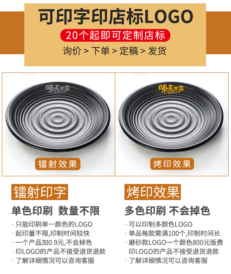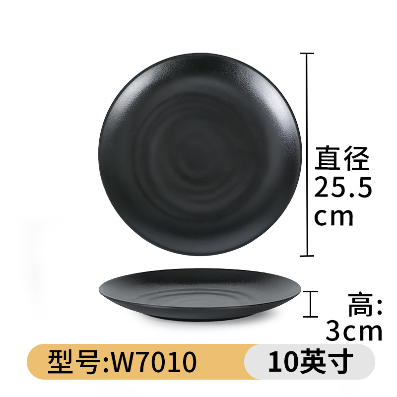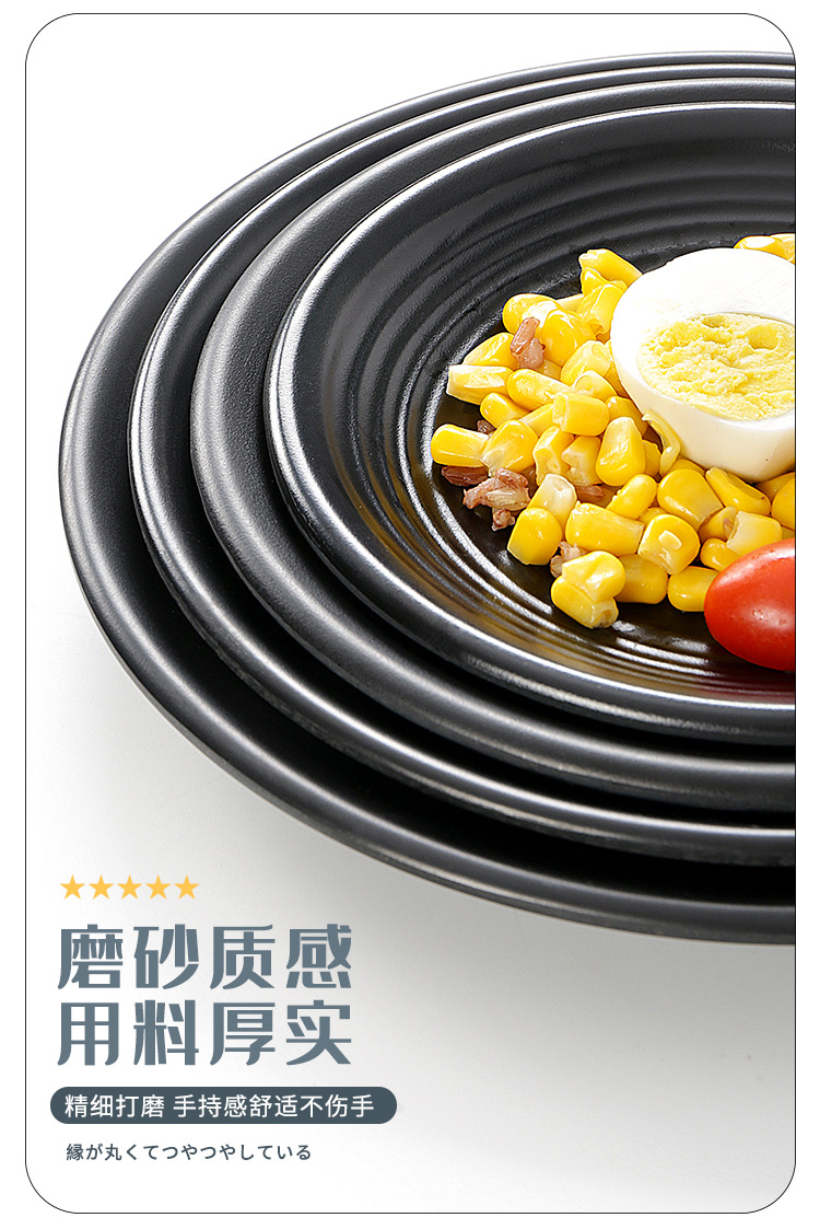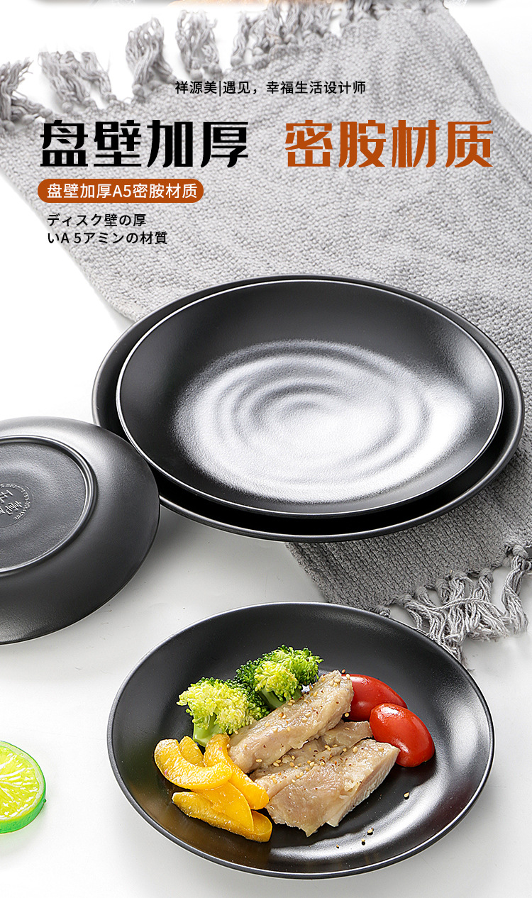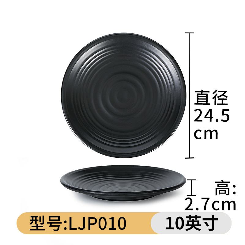 멜라민 식기 블랙 프로스트 바베큐 접시 디스크 플라스틱 접시 평판 원형 냄비 레스토랑 접시 디너 플레이트 상업스토어 가기