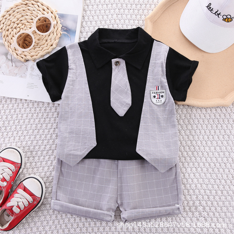 소년의 반팔 아기 여름 서양 스타일 어린이 영국 조끼 세트 어린이의 새로운 투피스 여름 원피스