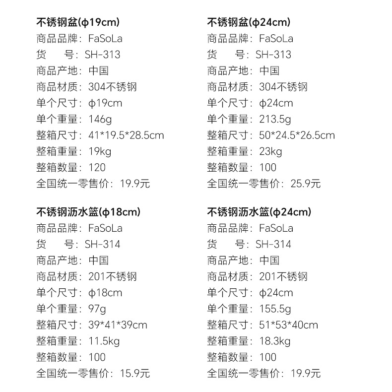 FaSoLa 가정용 다기능 스테인레스 스틸 야채 세척 배수 바구니 스케일 혼합 분지 주방 쌀 체스토어 가기