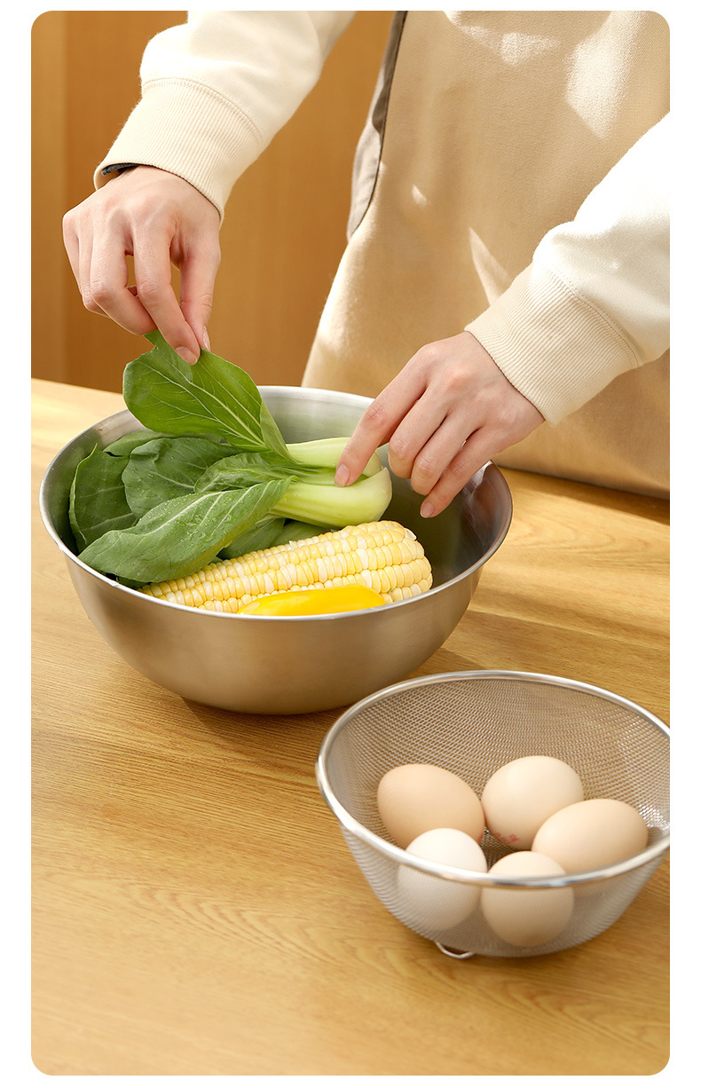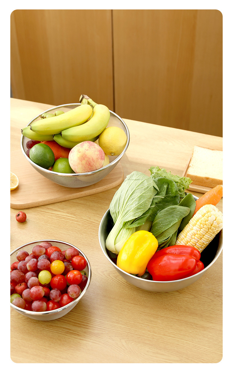 FaSoLa 가정용 다기능 스테인레스 스틸 야채 세척 배수 바구니 스케일 혼합 분지 주방 쌀 체