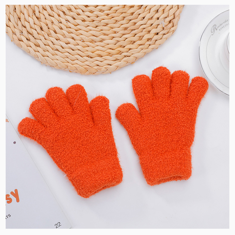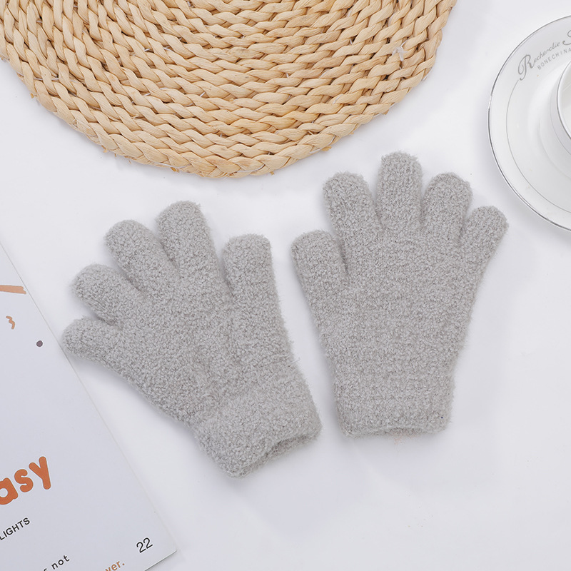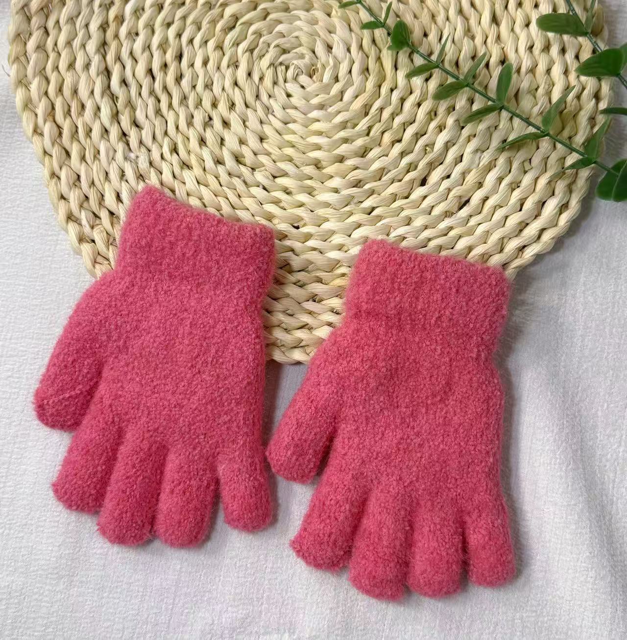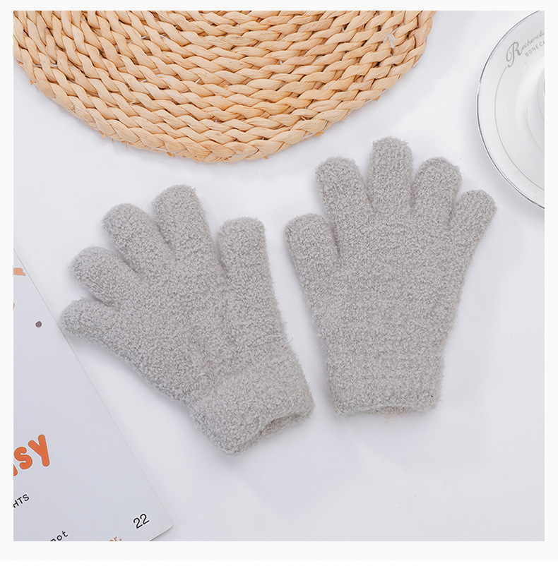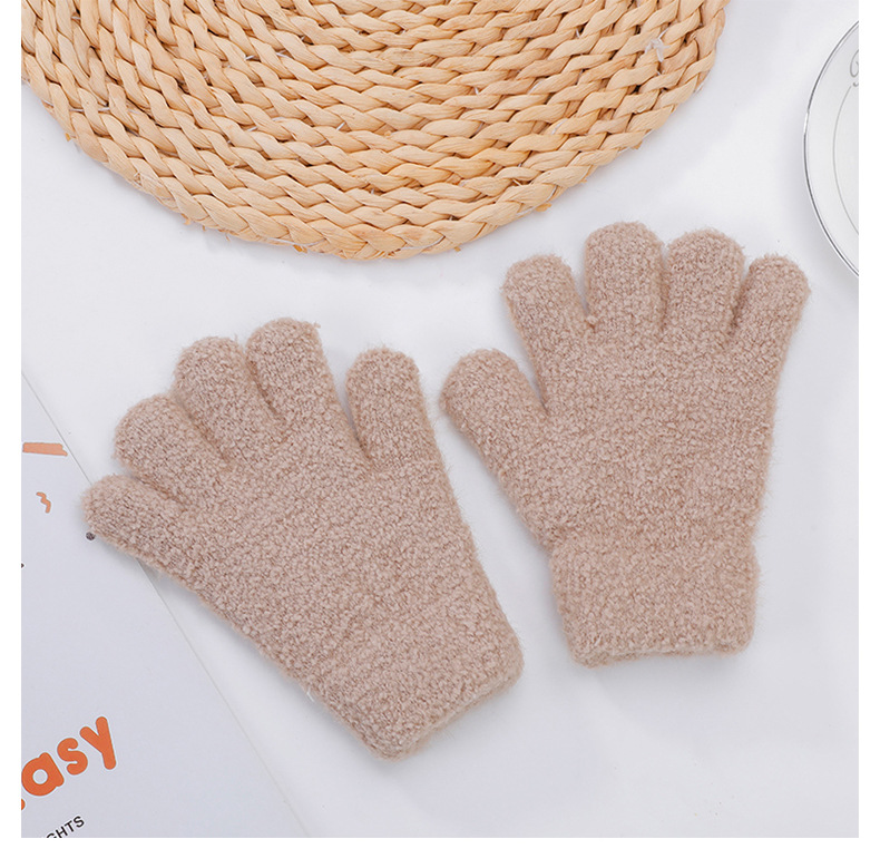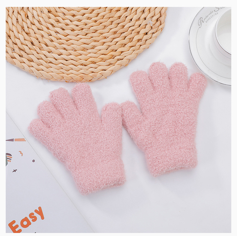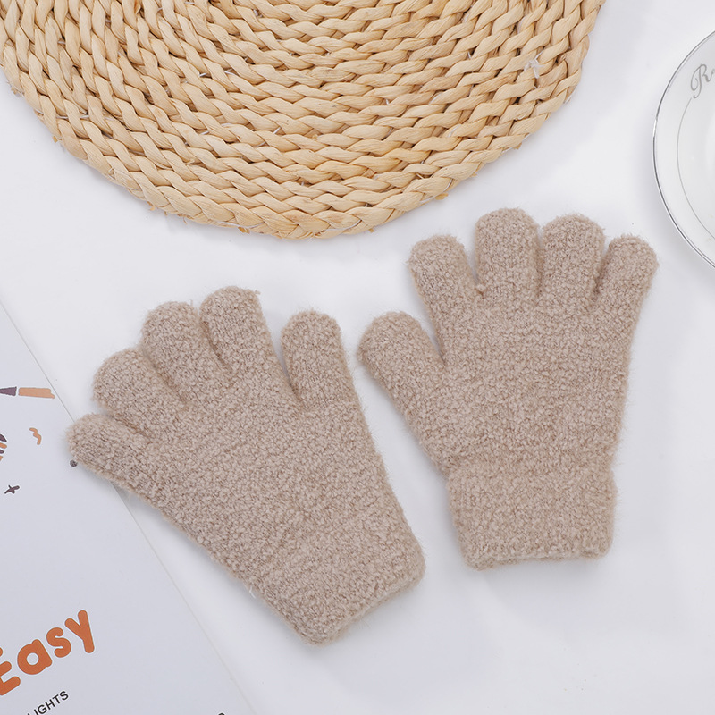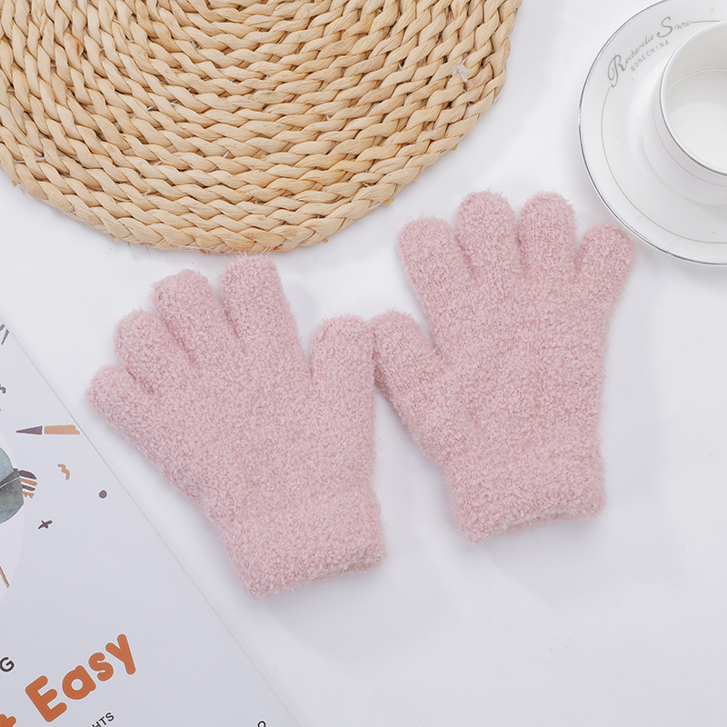 모든 경기 남자와 여자의 간단한 단색 더블 레이어 따뜻한 의류 액세서리 가방 니트 다섯 손가락 장갑을 기모 어린이 장갑