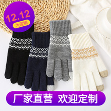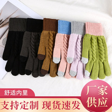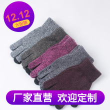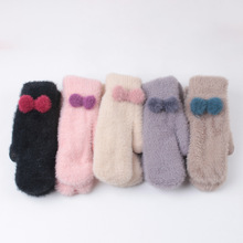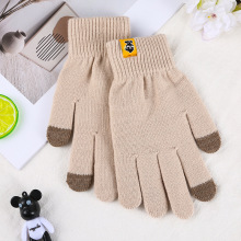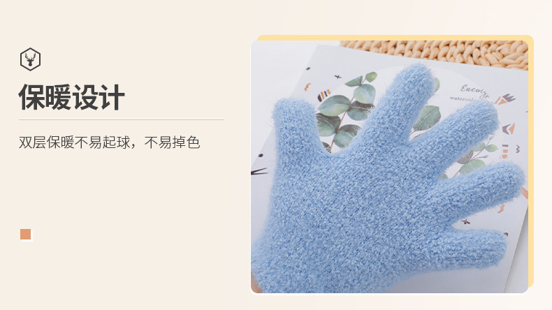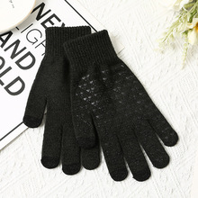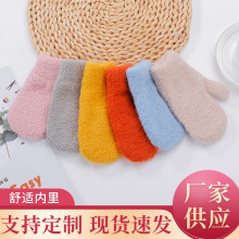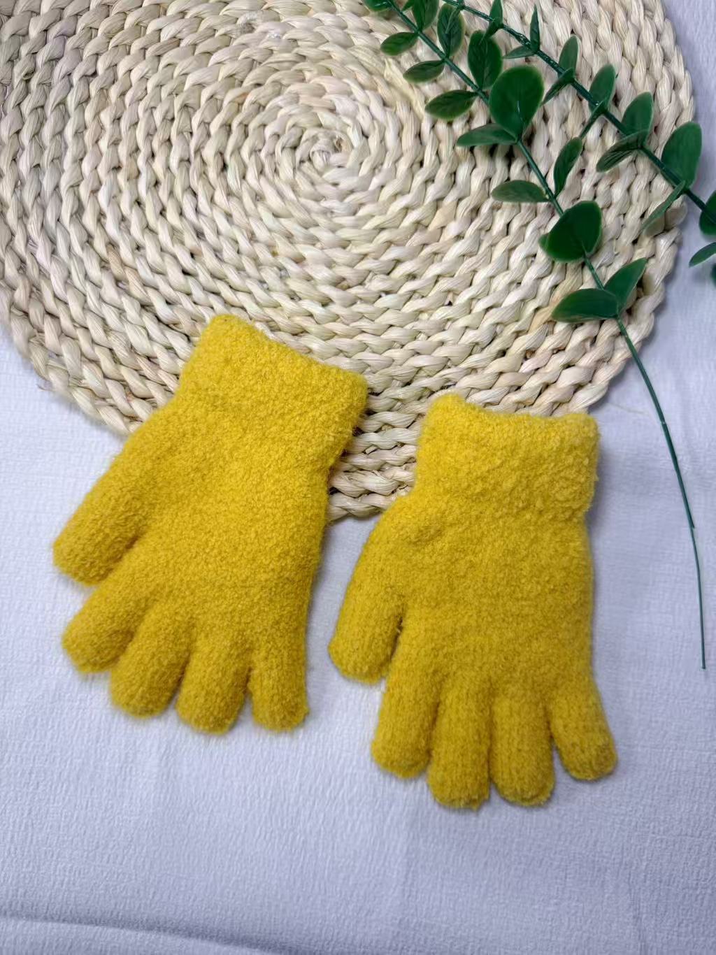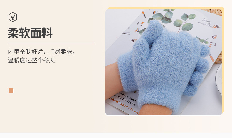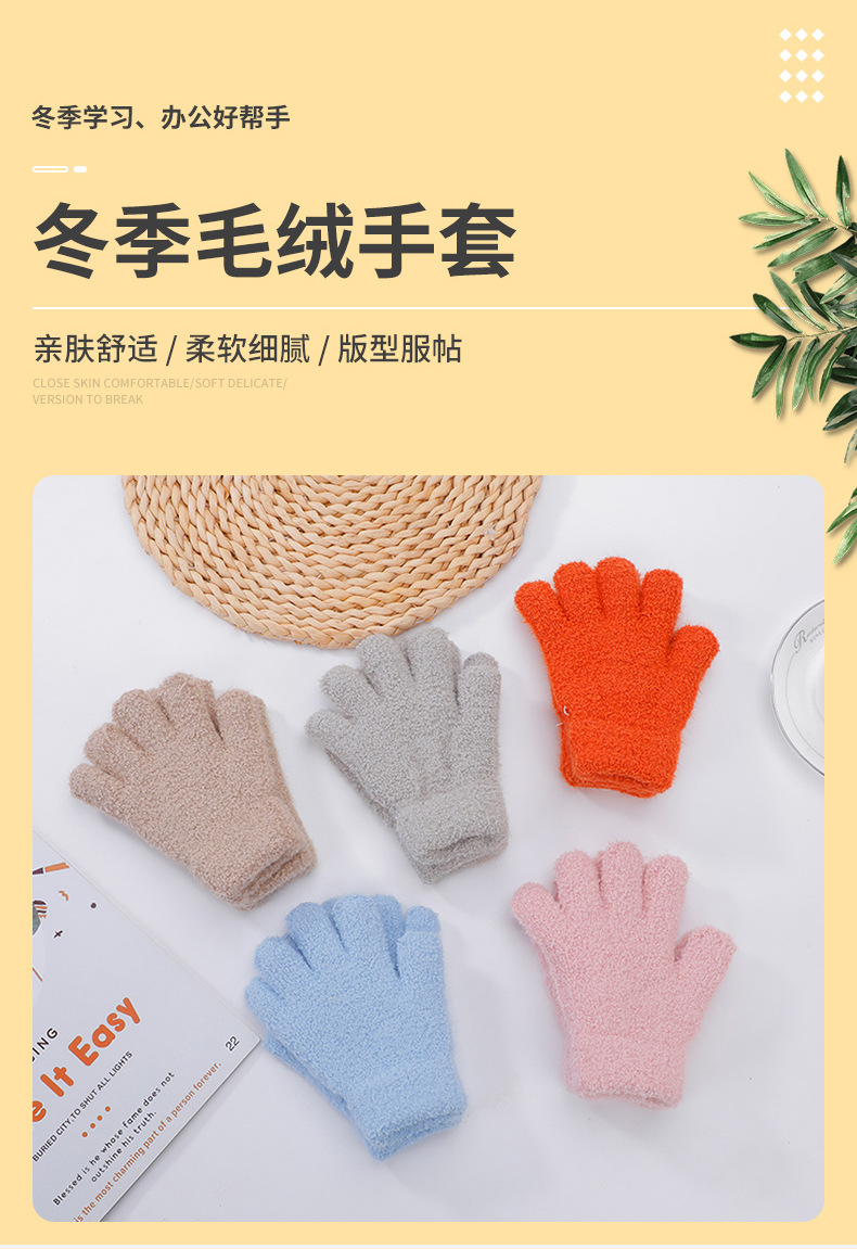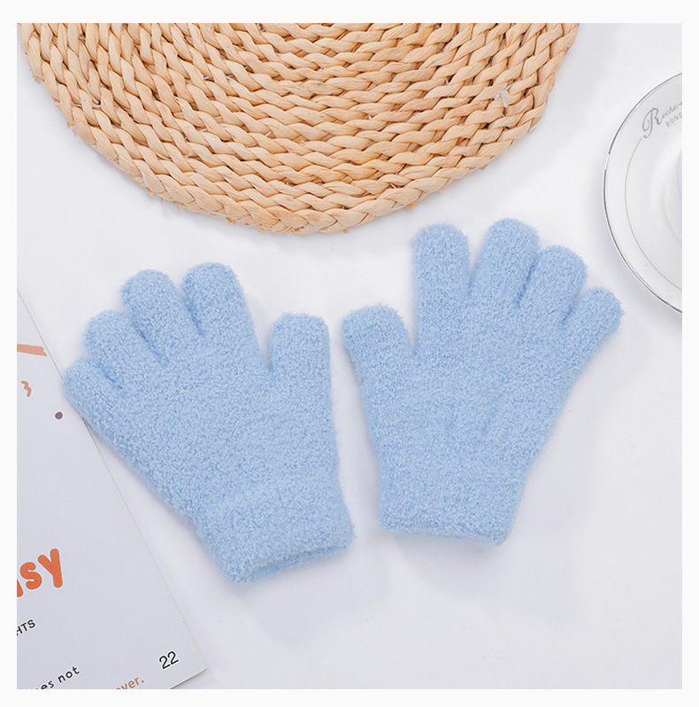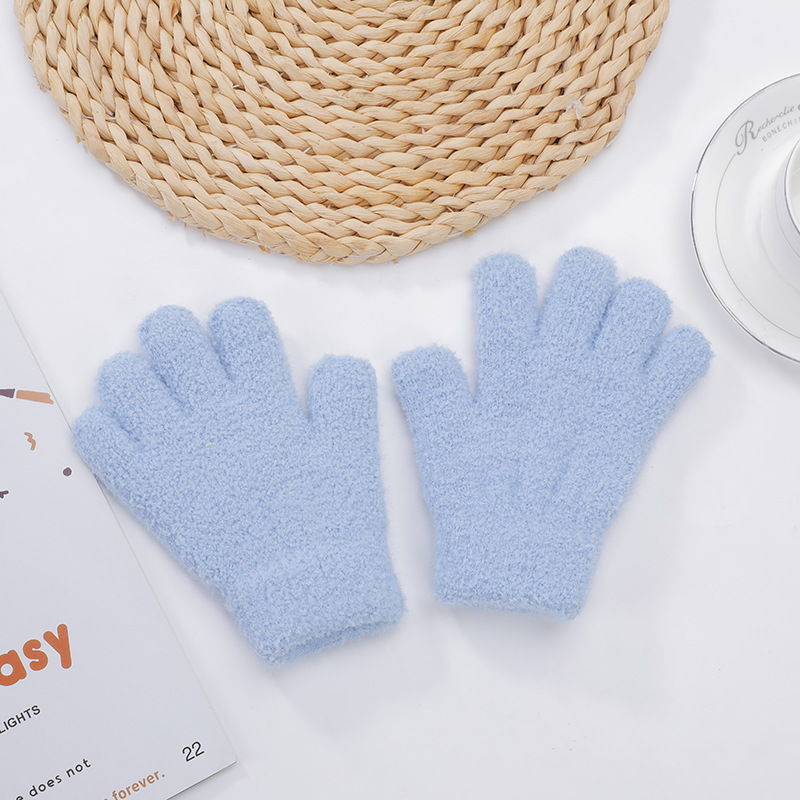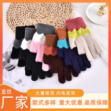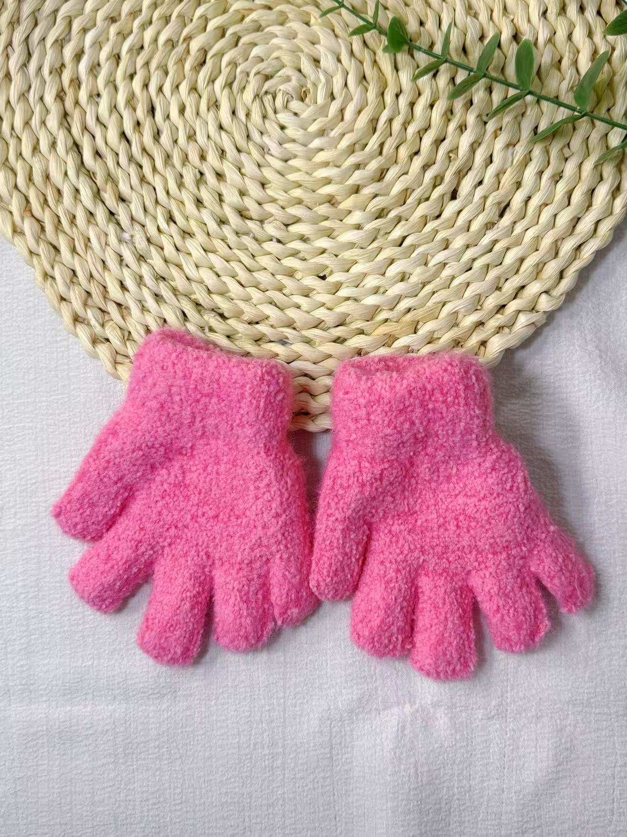 모든 경기 남자와 여자의 간단한 단색 더블 레이어 따뜻한 의류 액세서리 가방 니트 다섯 손가락 장갑을 기모 어린이 장갑