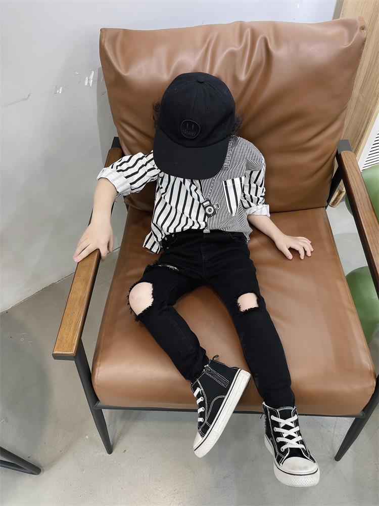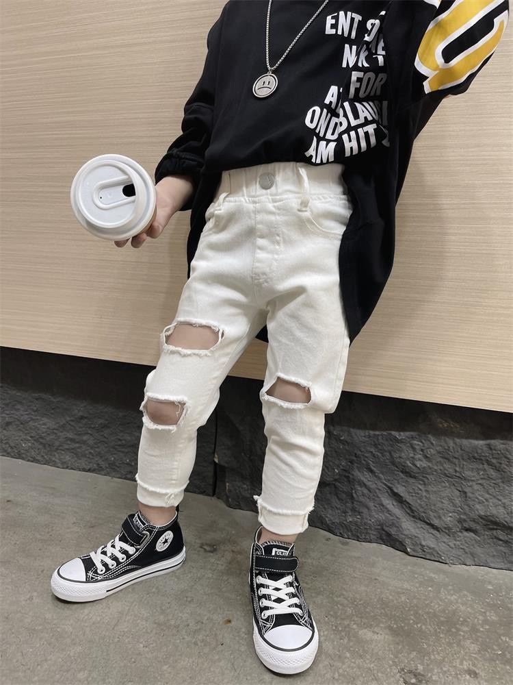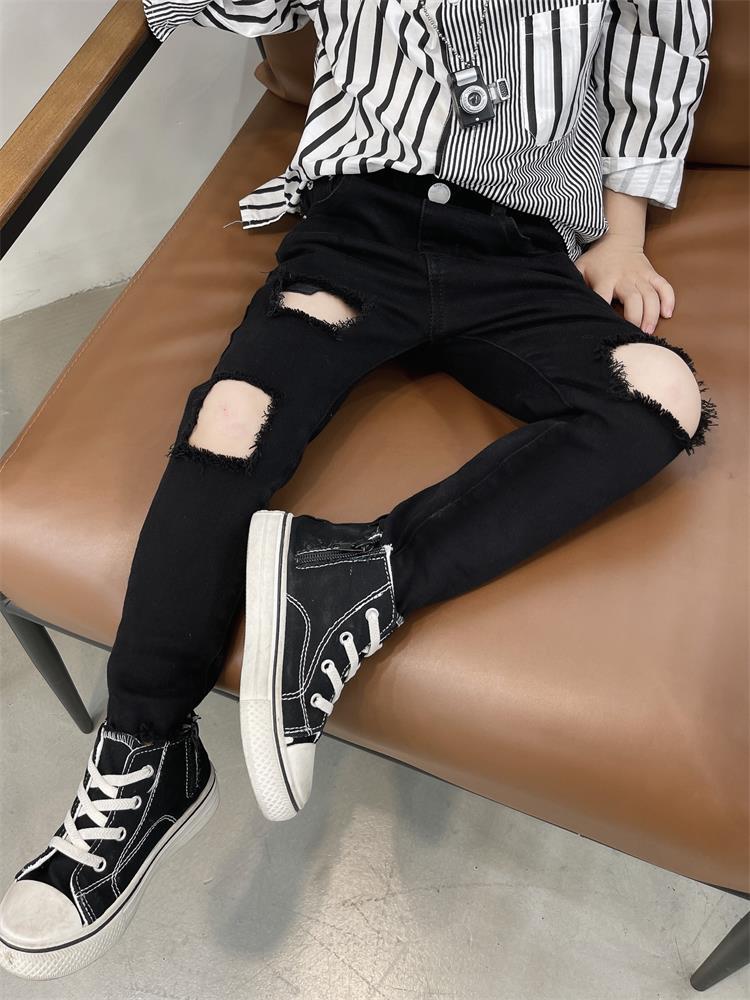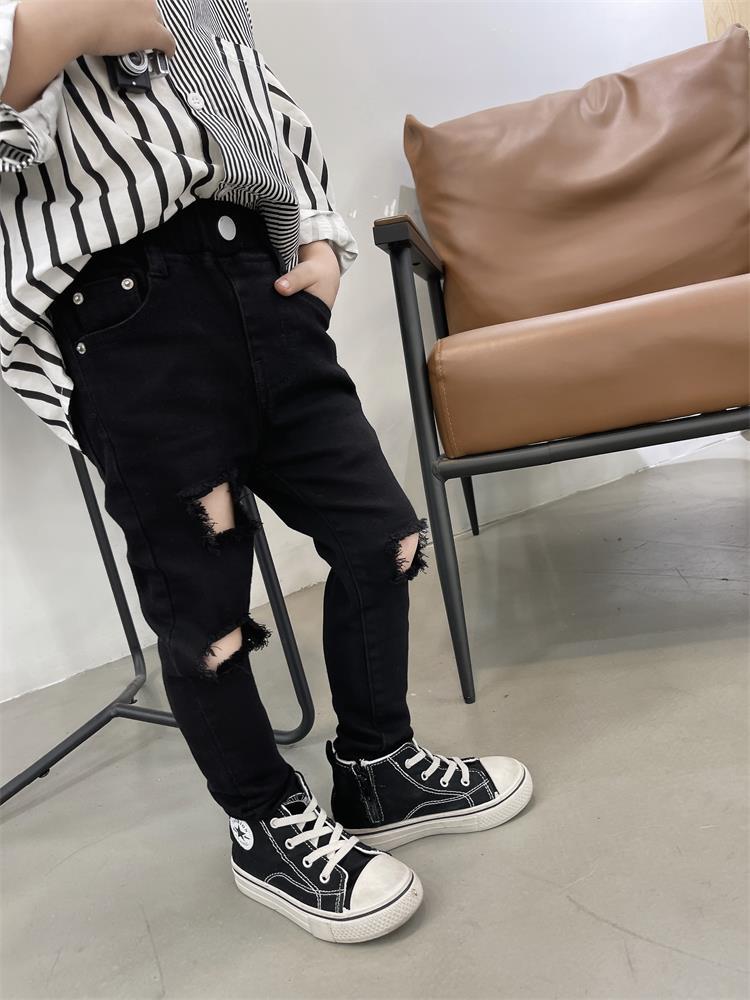 아동 바지 봄 가을용 힙합 스타일 한국판 남아 슬림핏 찢어진 바지스토어 가기