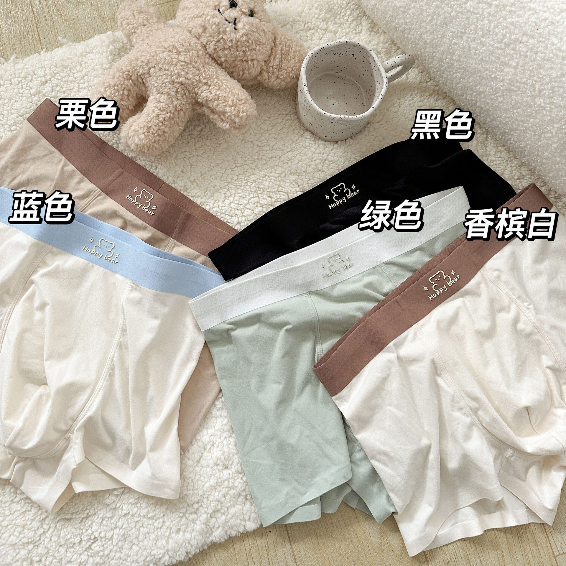 M22001 크림 샌딩 베어 접착제 방울 세트 땀 흡수 부드러운 부드러운 남성 샌딩 복서 팬티스토어 가기