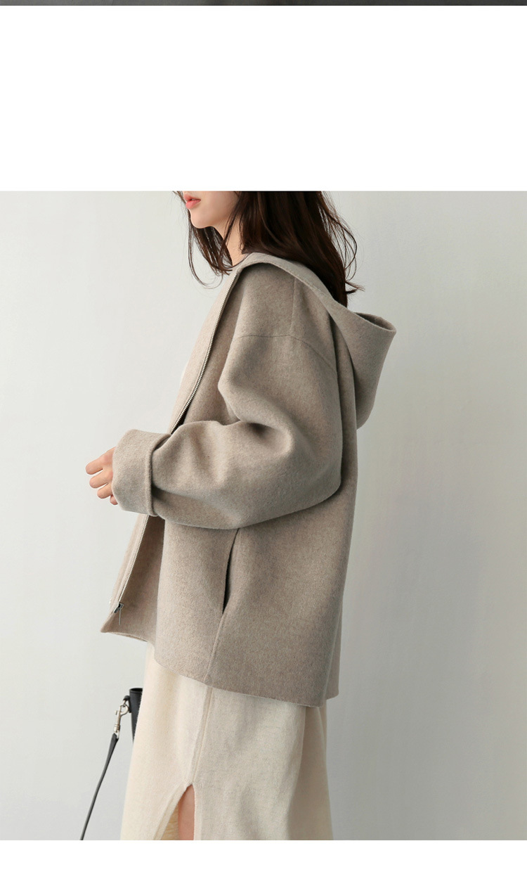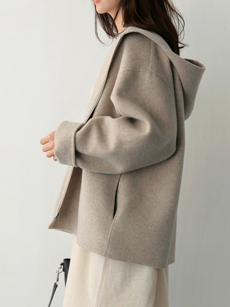 후드 모직 코트 여성용 짧은 스타일 2026 가을 겨울 신상 루즈핏 단색 캐주얼 모직 코트스토어 가기